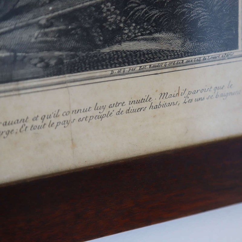 18th Century French Engraving Landscape with Diogenes by Étienne Baudet in original frame