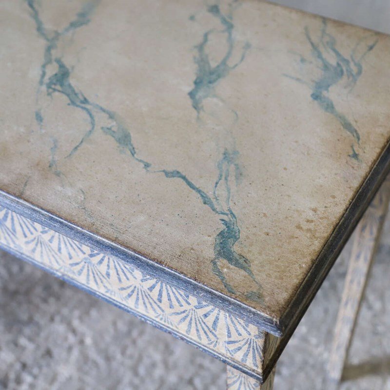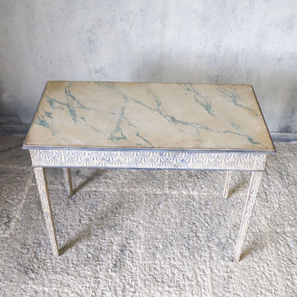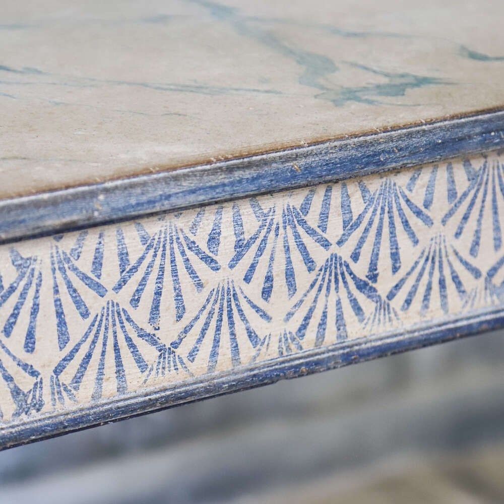 Top: Later Hand-painted faux marble design with an Antique White background with Antique Rich Blue veining to create the Faux Marble Design.