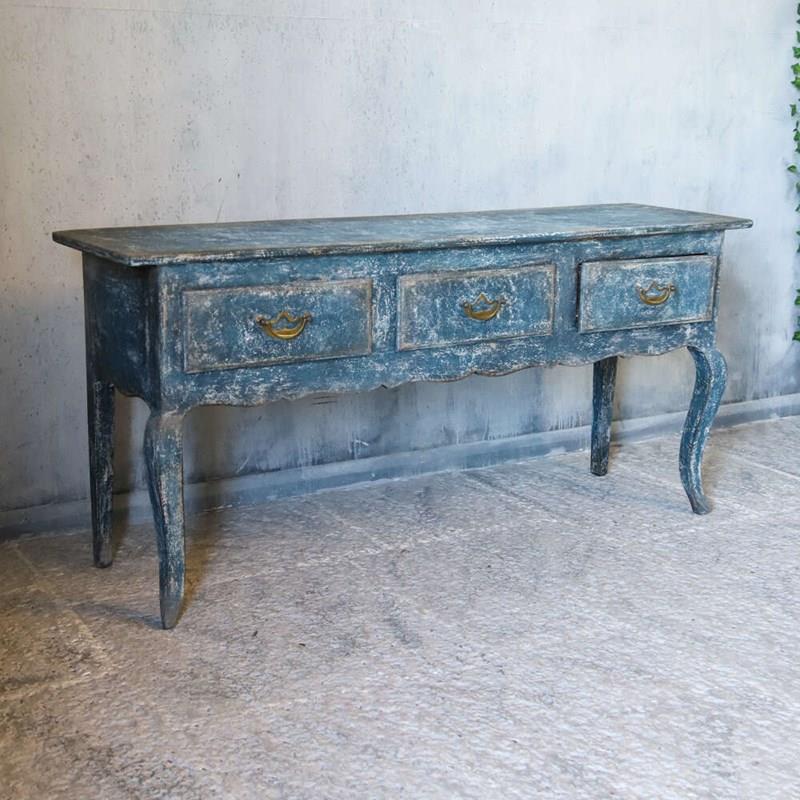Decorative Antique French Sideboard In Distressed Chalky Blue Paint