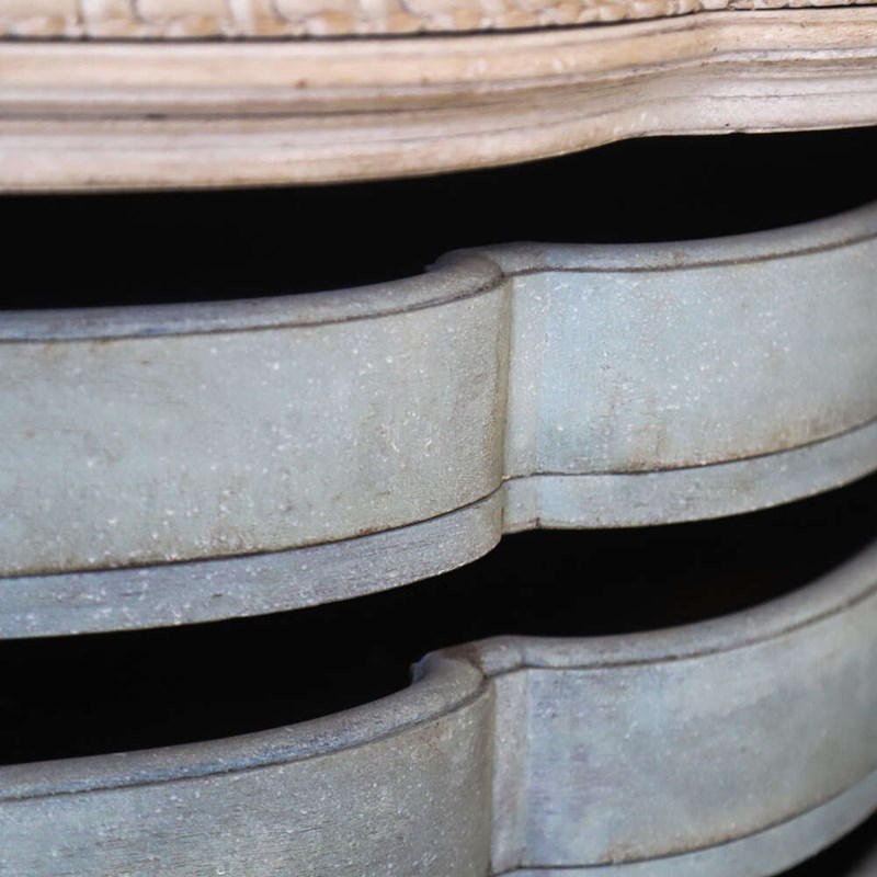 This piece has real presence — the serpentine shape, the mythical‑beast feet, the carvings, and the layered paintwork all combine to create something both elegant and full of personality. The distressed marble top and blue‑green interior add unexpected touches that make it feel truly special. A standout decorative cabinet with endless styling potential.