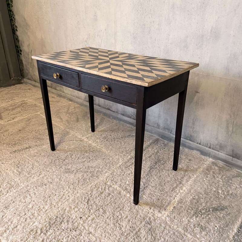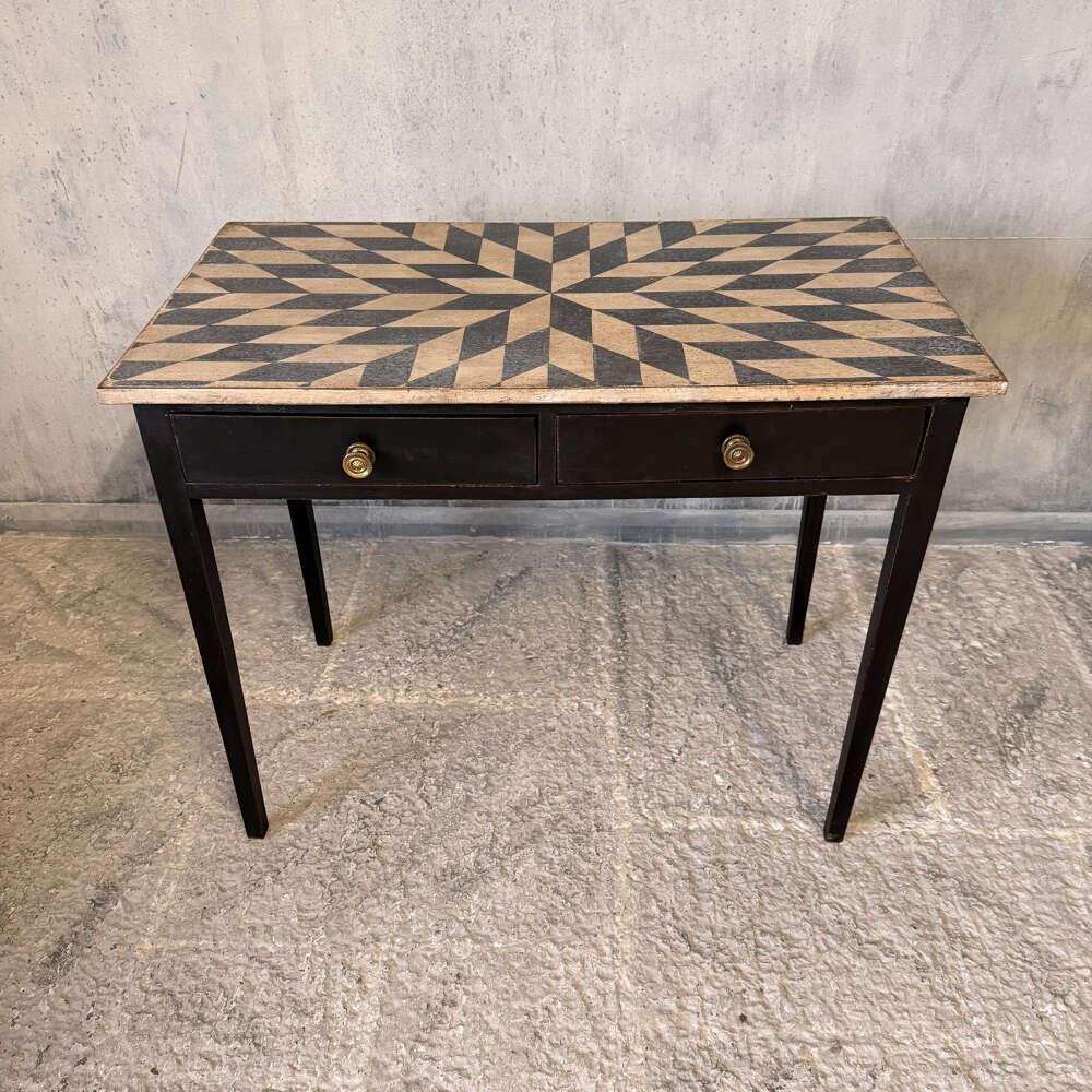 Late Georgian Side Table With Two Drawers And Hand-Painted Geometric Top C.1820