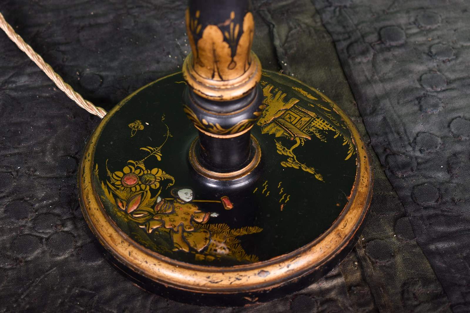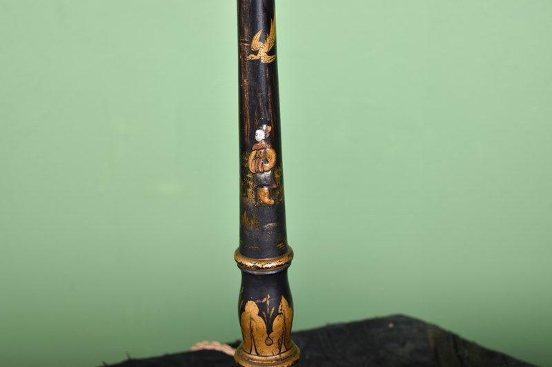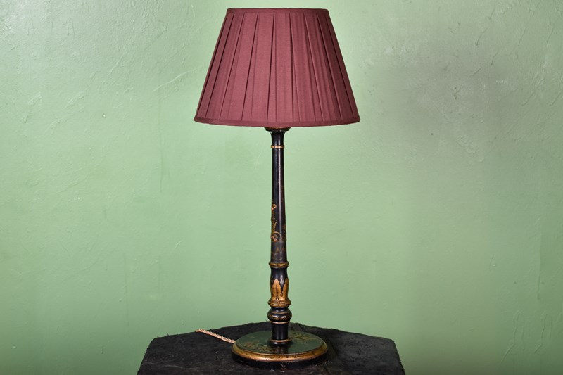 A very nice black, red and parcel gilt chinoiserie table lamp.