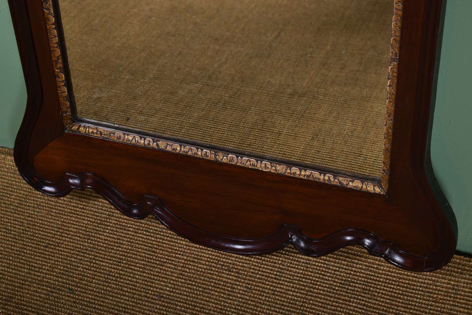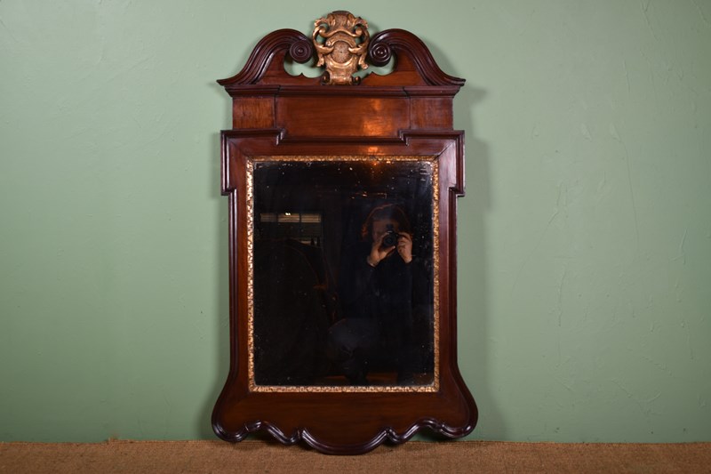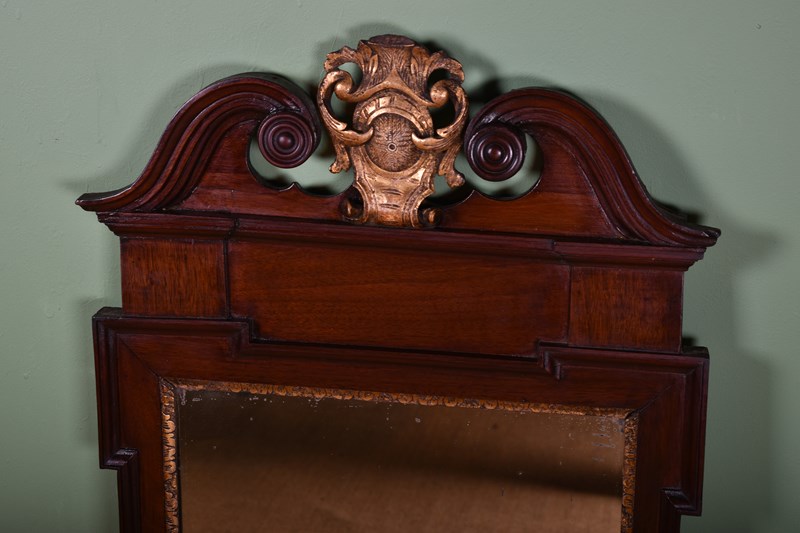 A George II period mahogany and parcel gilt pier mirror, with sweeping swan neck pediment over original plate glass.
