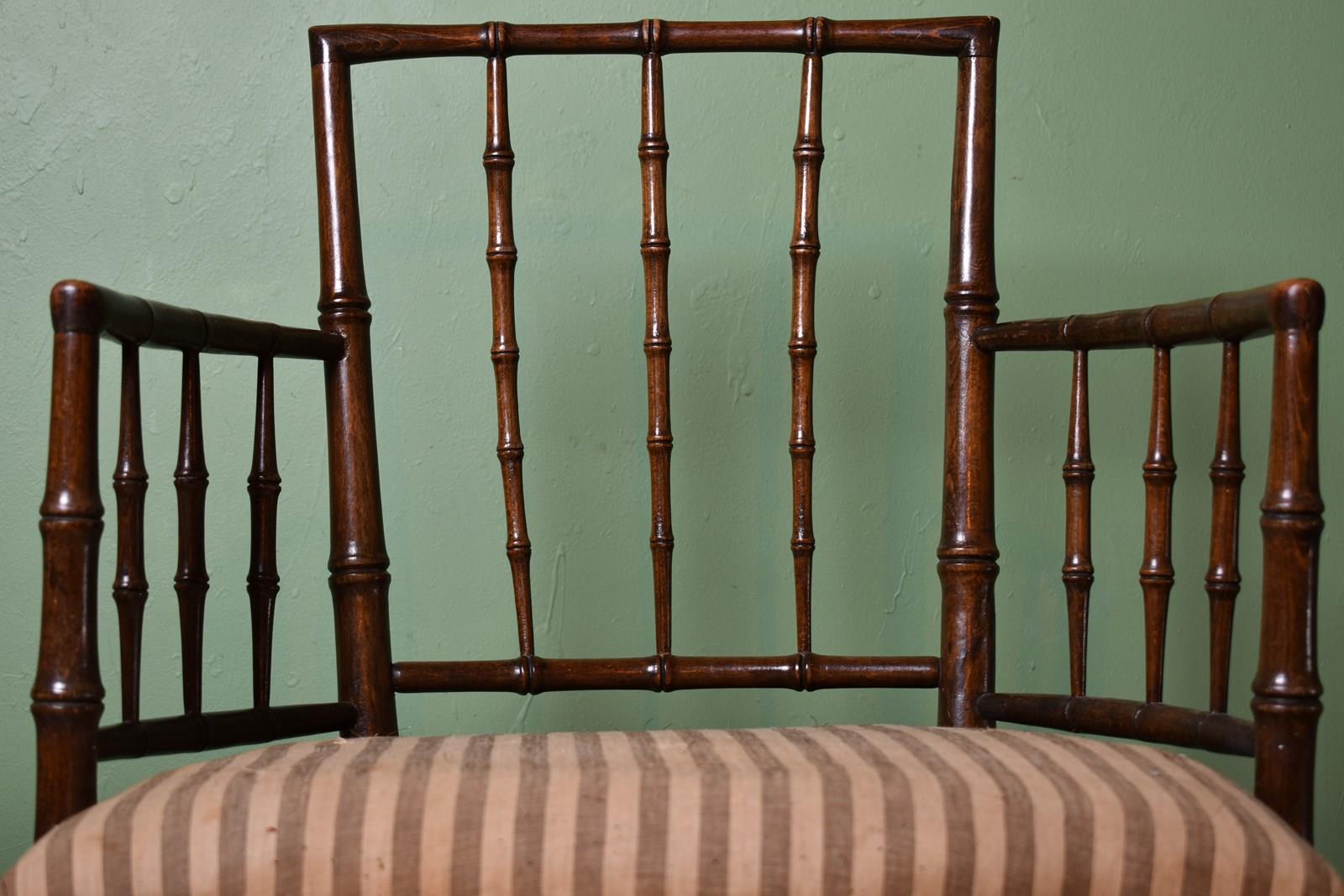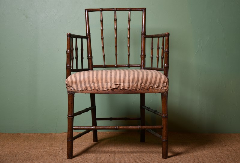 A wonderful and rare George III period faux-bamboo armchair.