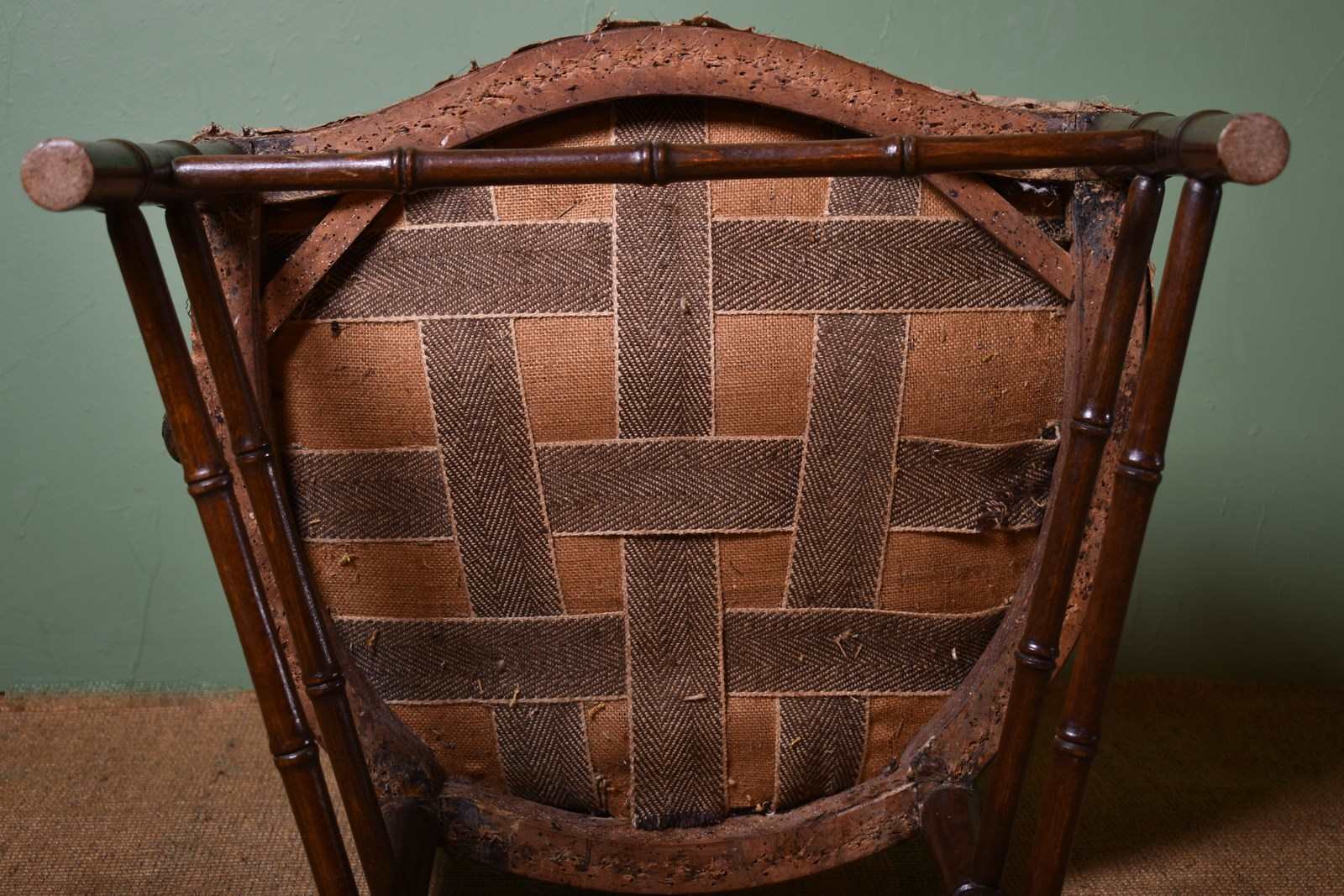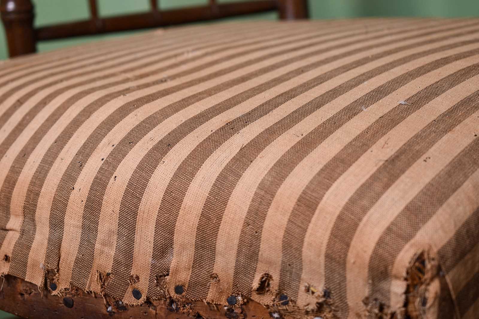 Horsehair seat with period ticking, both probably original to the chair.