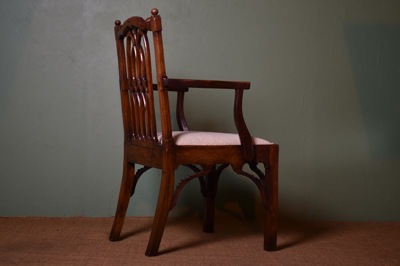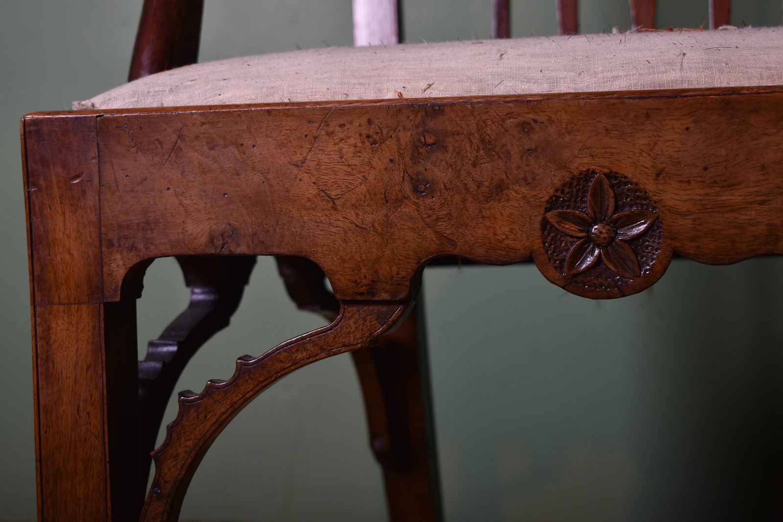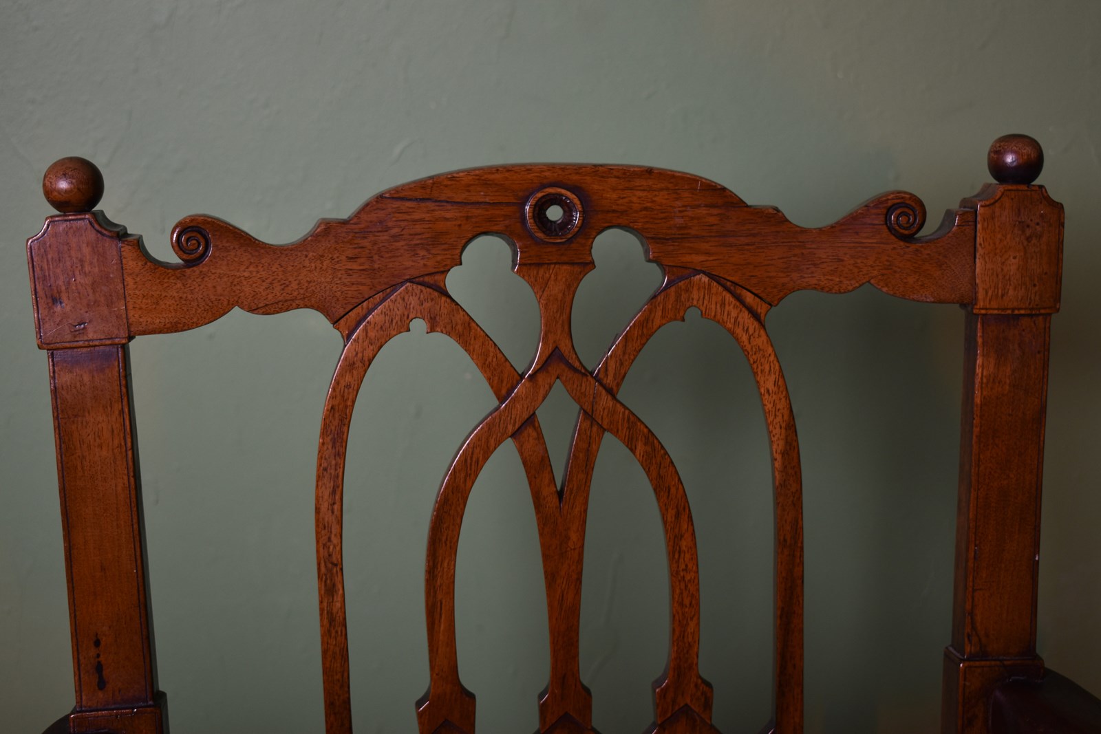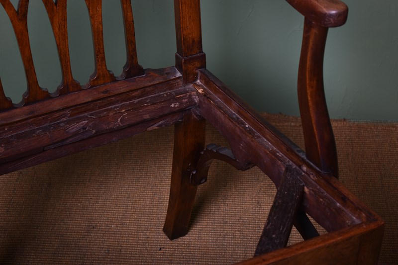 Interestingly this chair has an oak frame with mahogany veneer, arms are solid mahogany. It also features unusually 'meaty' corner brackets.