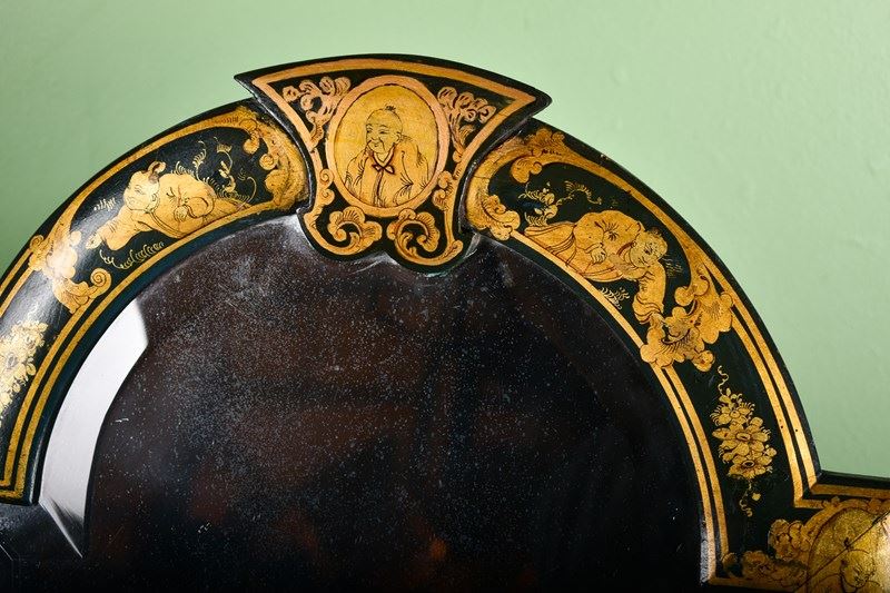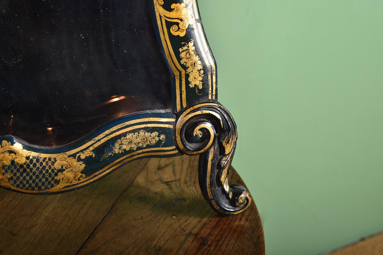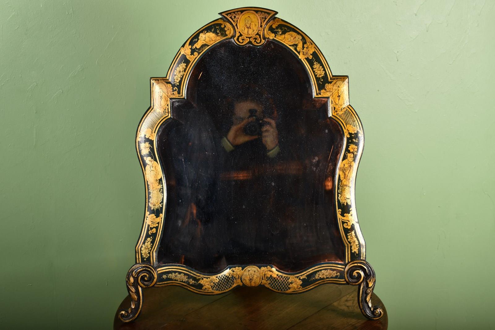 A highly decorative green chinoiserie decorated dressing table mirror.