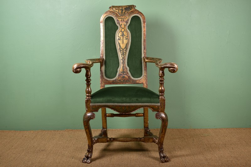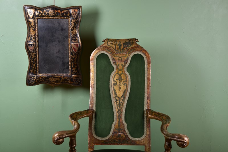 with original hand painted decoration, featuring a chinoiserie scene to the crest.
