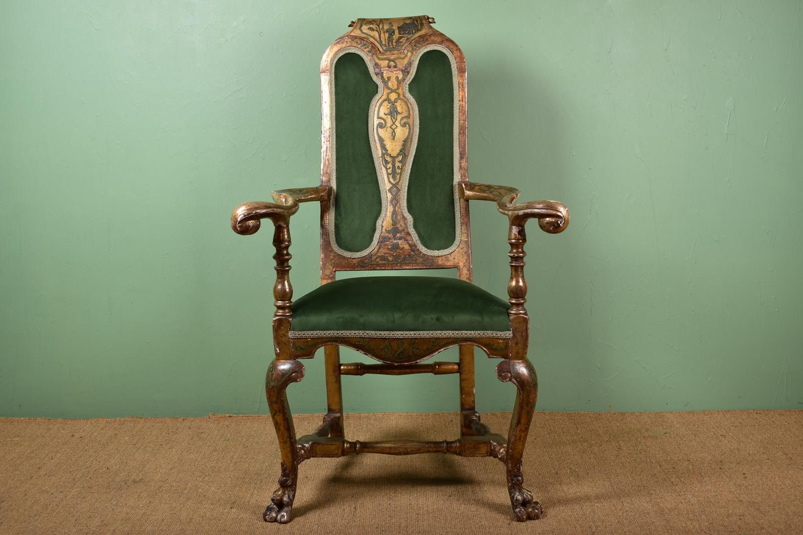 A beautiful and shapely eightieth century Italian giltwood armchair.
