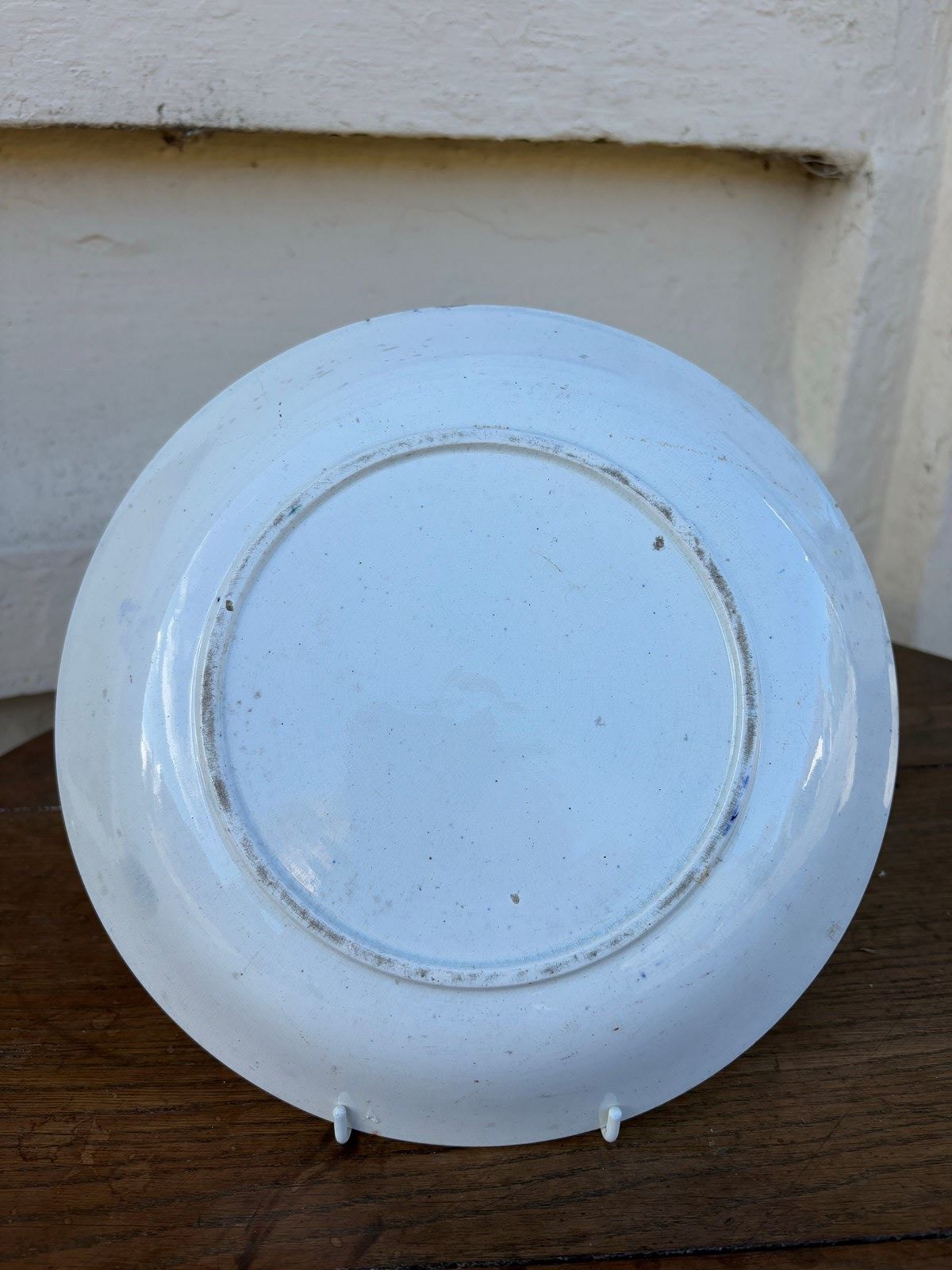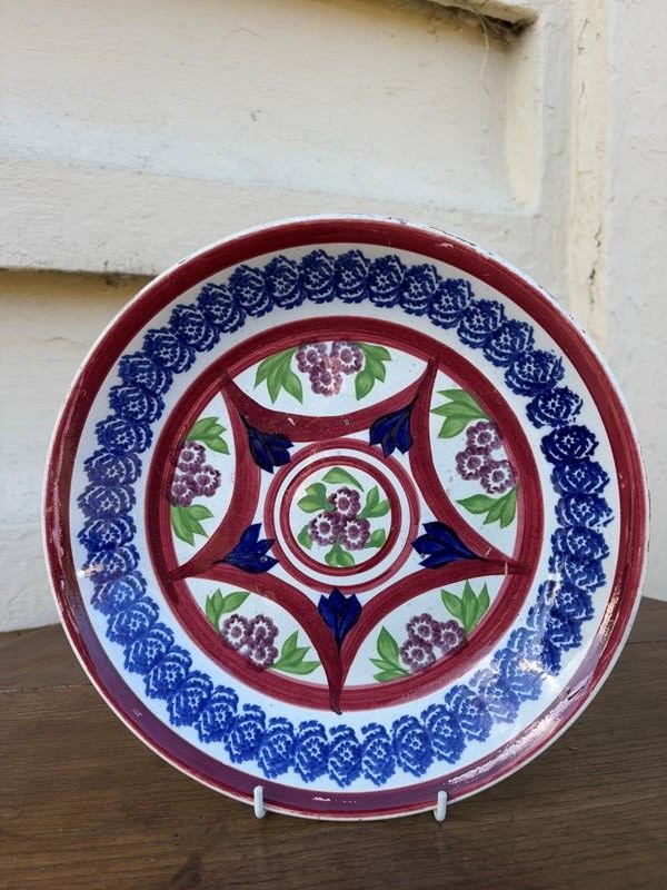 A mid-nineteenth century spongeware dish, with foliage and line work decoration.