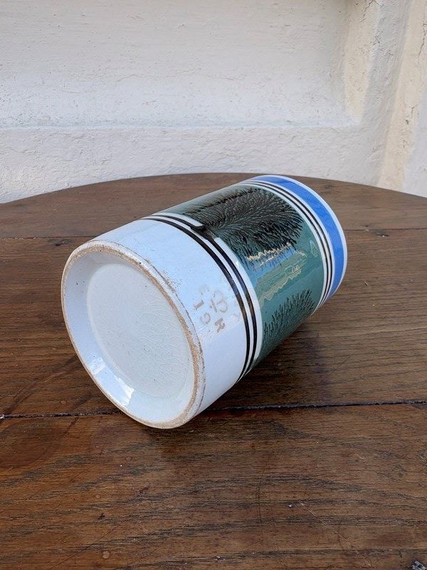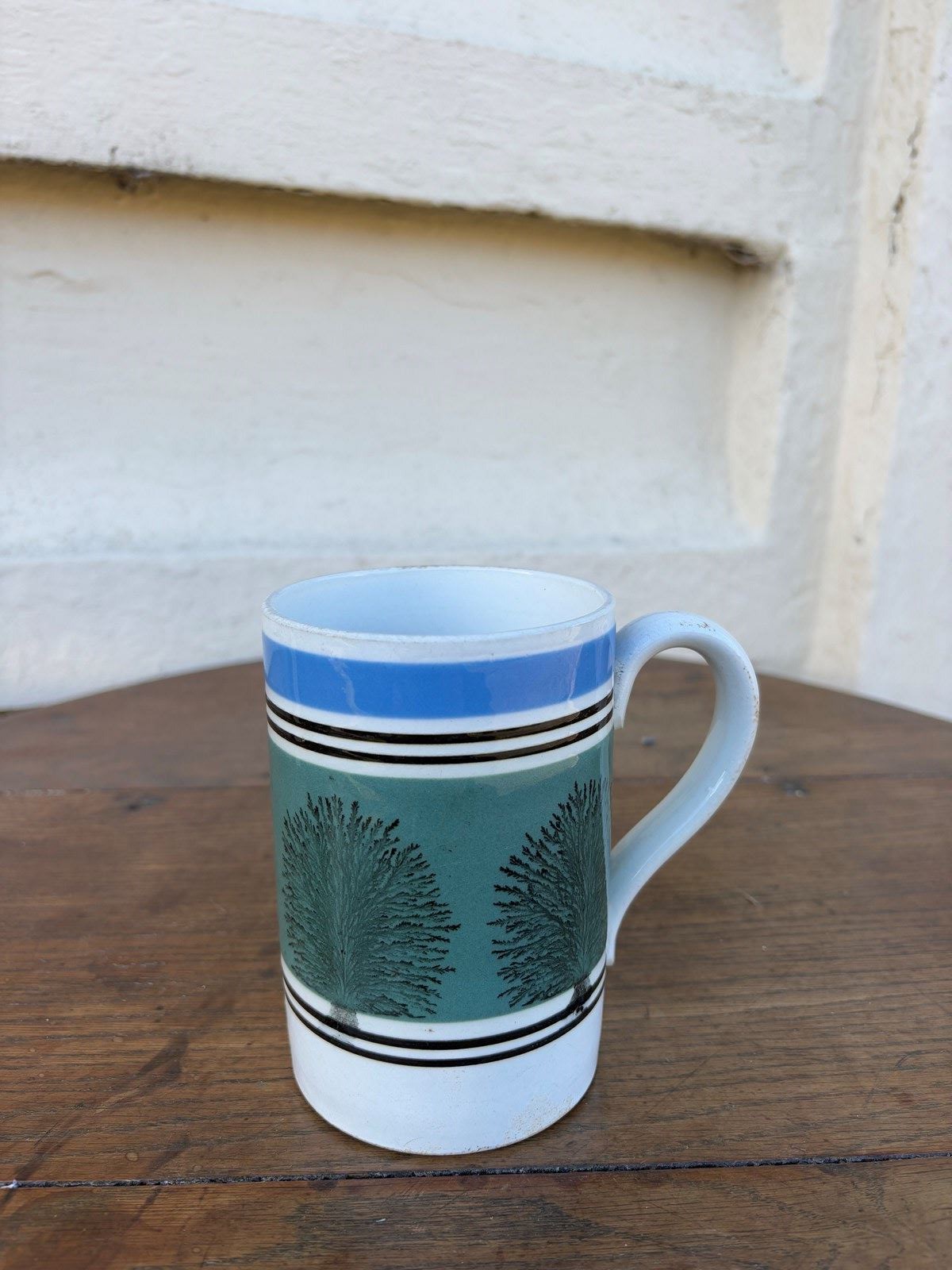 Minor chips handle base. Blue stripe band to the top and green centre band. ER 19