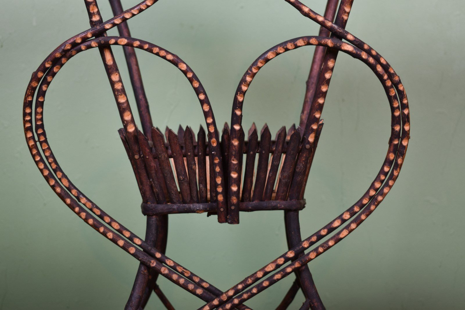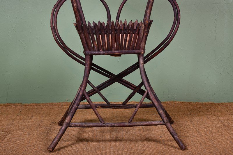 The heart-shaped base in steam bent Willow finished with notch carving & a small basket to the centre.