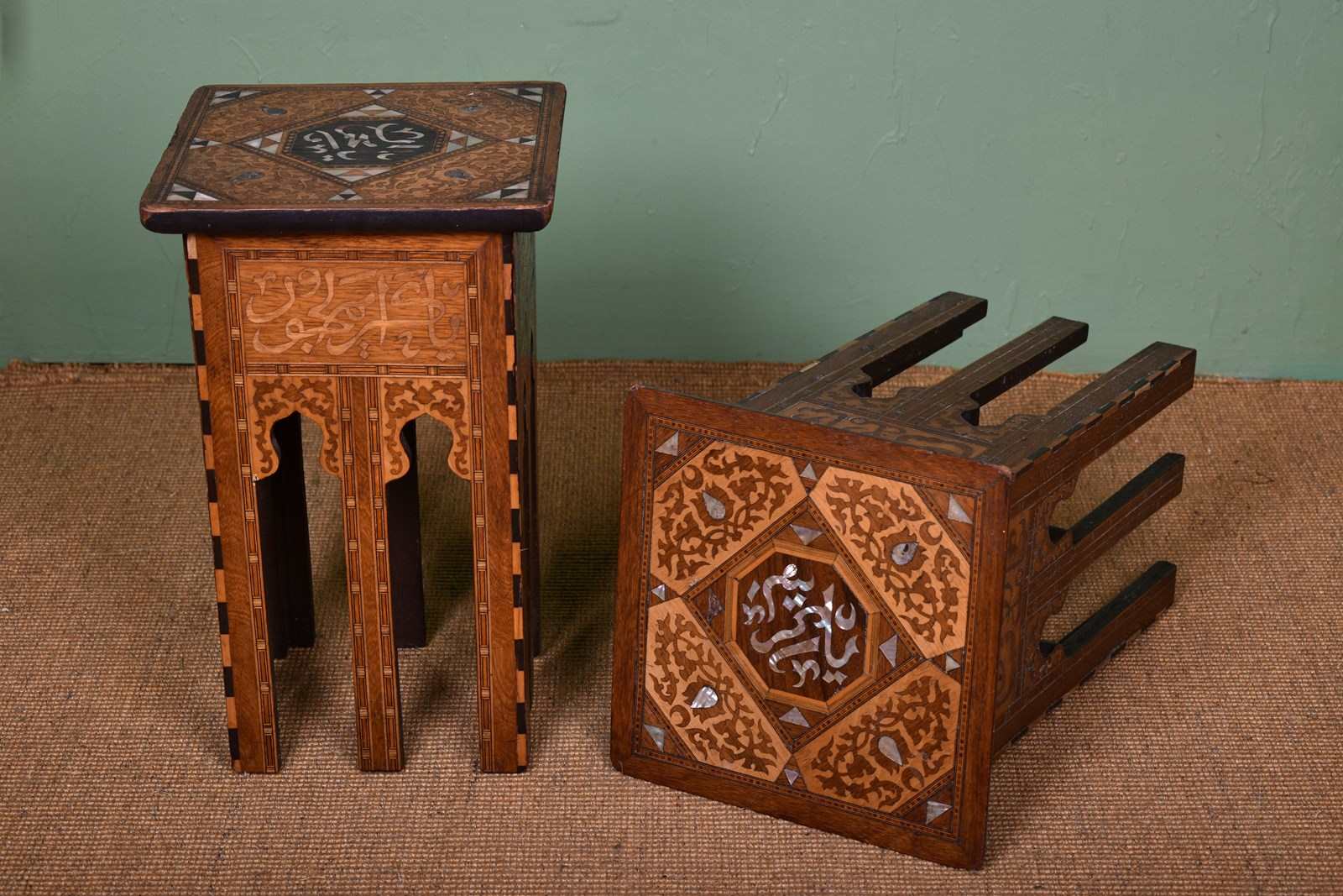 Featuring a variety of contrasting woods and mother of pearl.