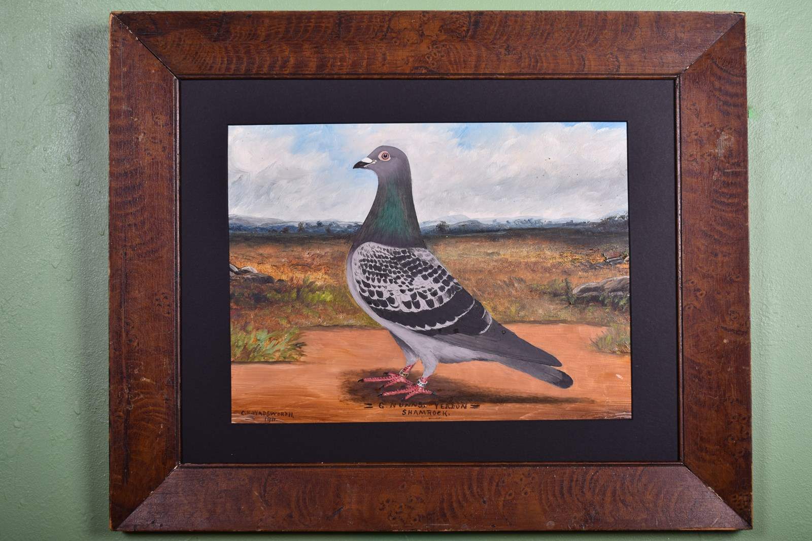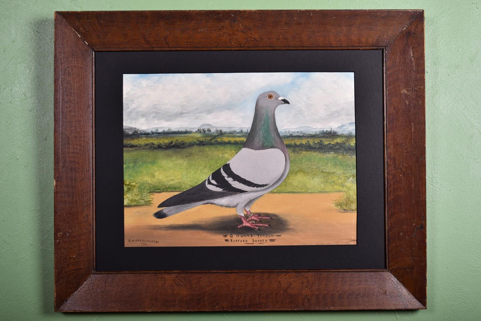 Original oil on board paintings by renowned pigeon portrait artist C H Wadsworth, both works are signed and dated 1911.