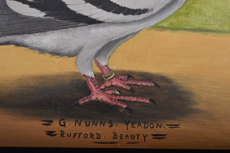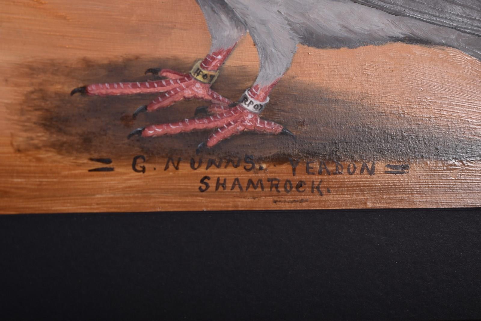 The prized birds "Shamrock" & "Rufford Beauty" belonged to and were commissioned by Mr George Nunns of West Yorkshire, whose hobby it was to breed and fly homing pigeons.