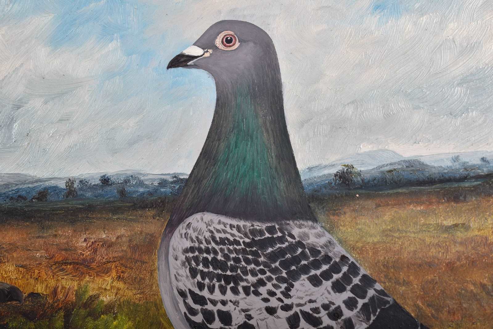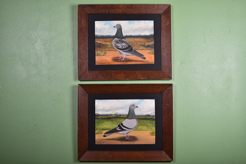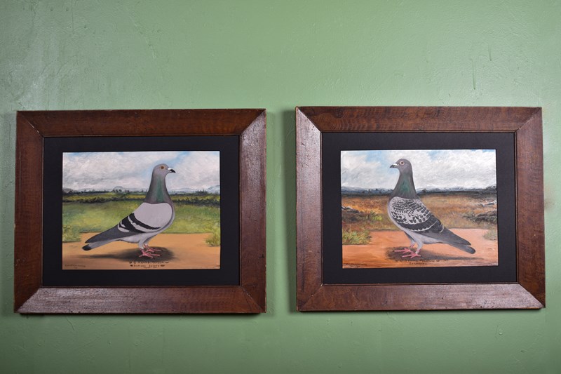 A wonderful, charming and rare pair of racing pigeon portraits.