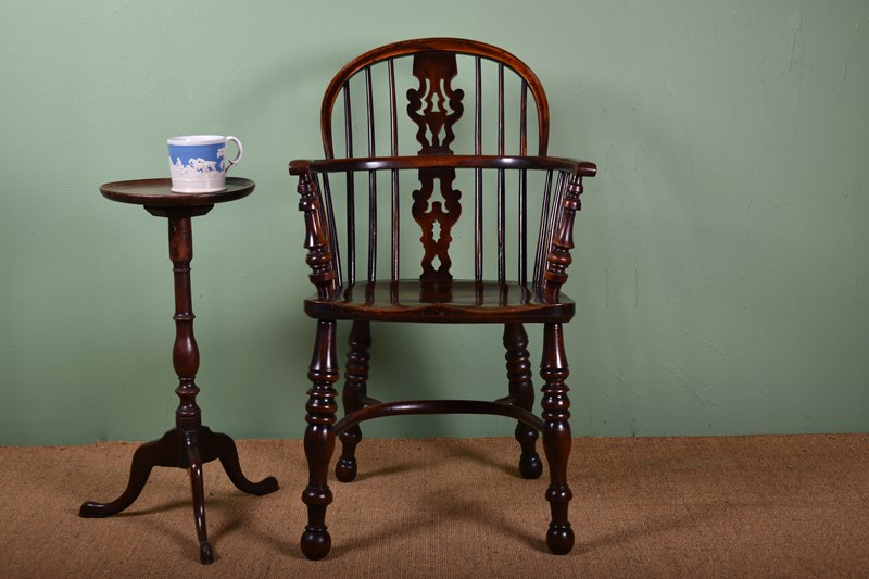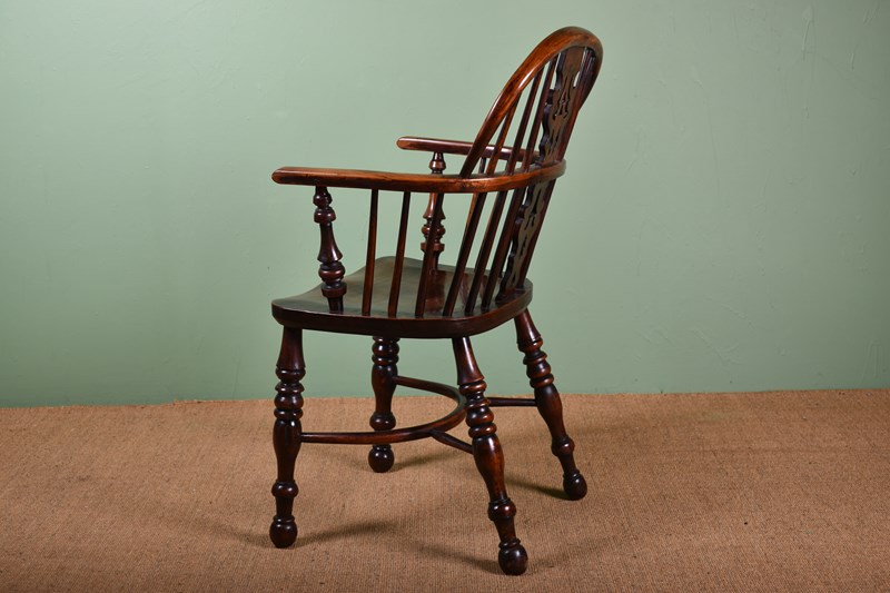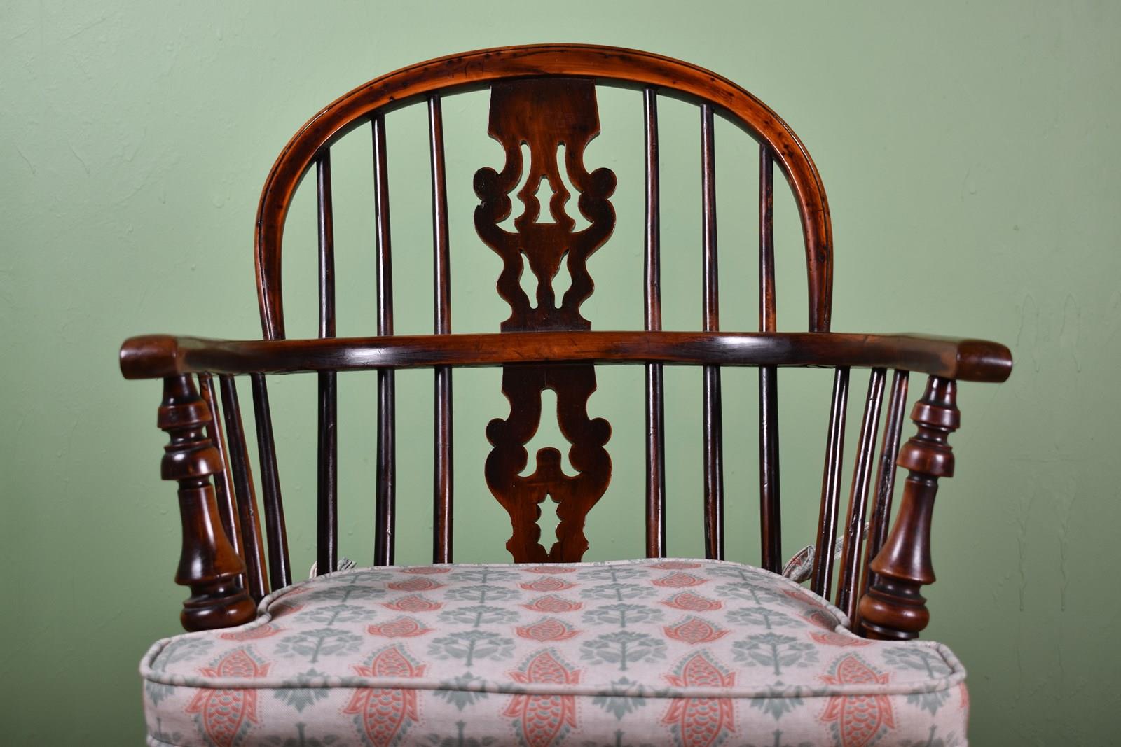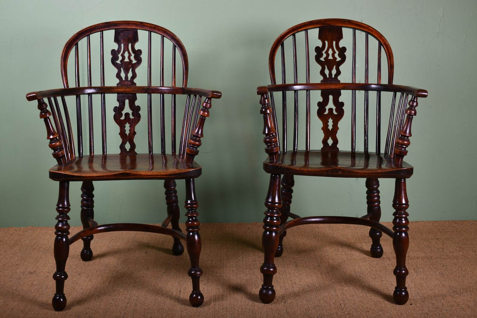 A stunning pair of ‘best’ low yew wood and elm seated Windsor armchairs, attributed to Nottingham, likely the worksop region.