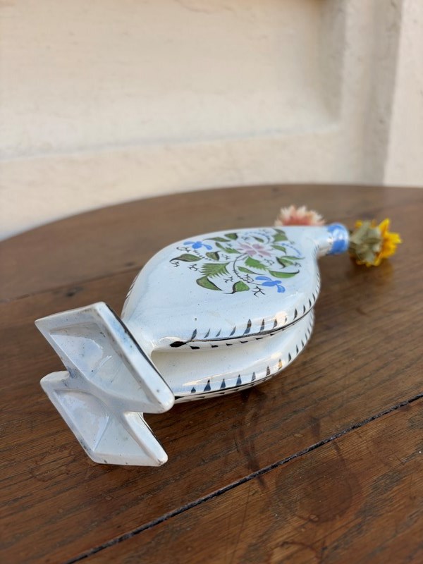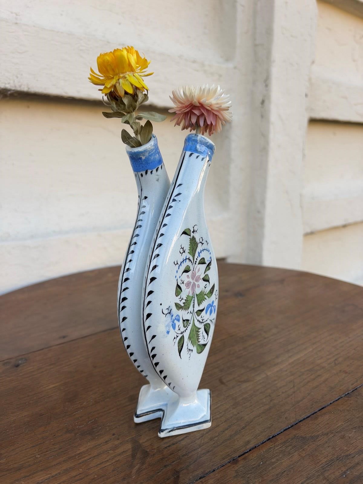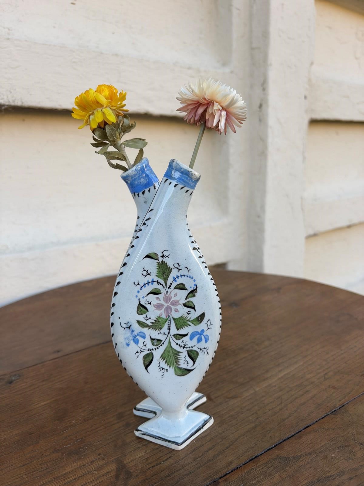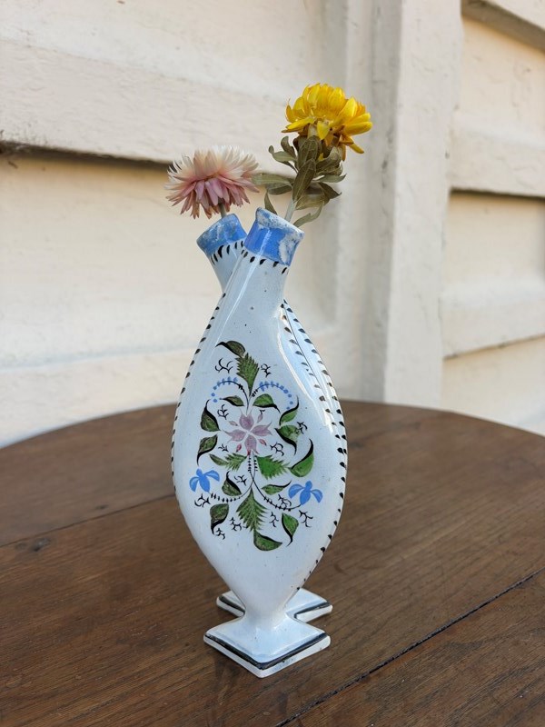 A late eighteenth century split-neck vase, with hand painted floral decoration.