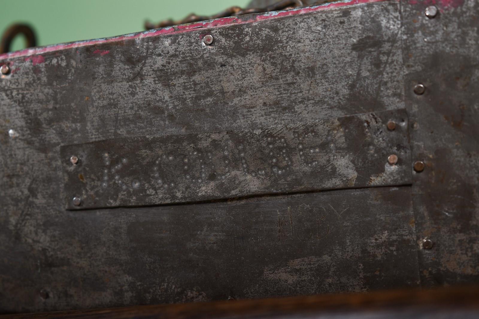 At the base of the ship there is a slip of metal with nail holes spelling out the maker’s name ‘K. Coulbeck’ and underneath scratched ‘Grimsby’.