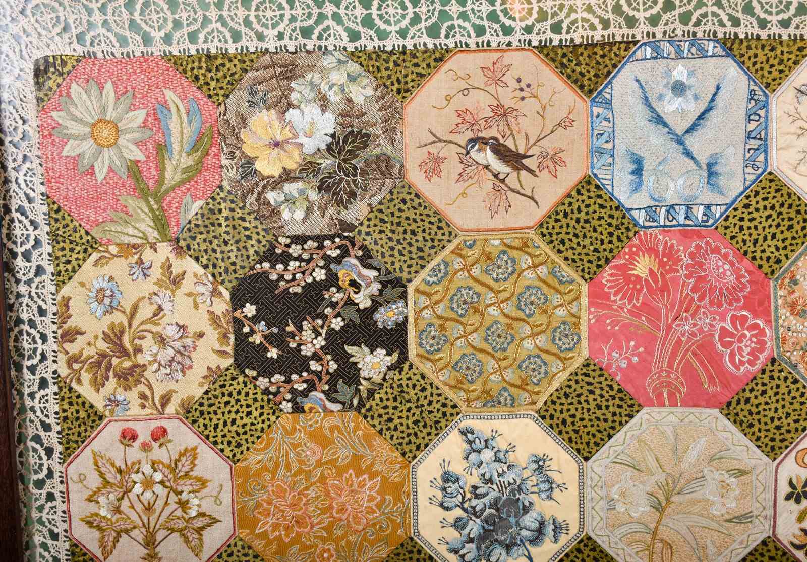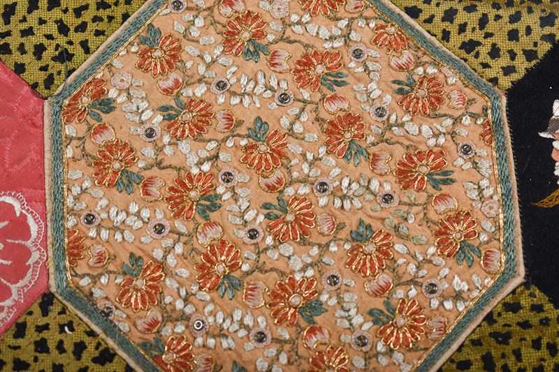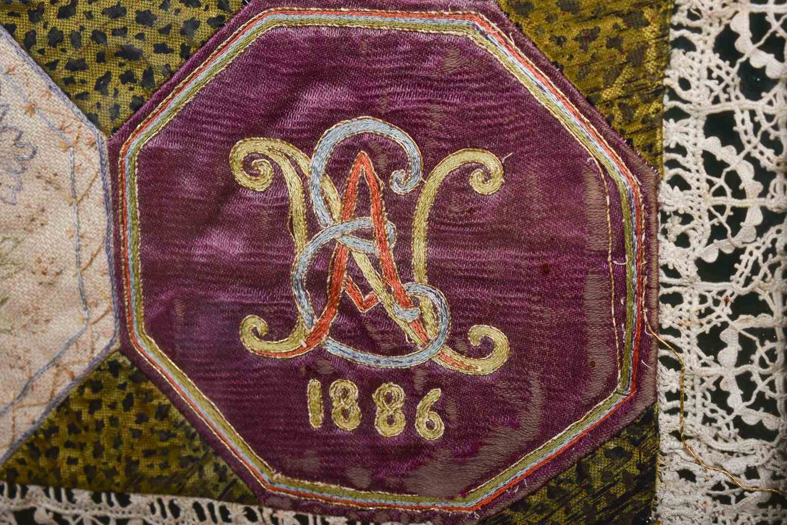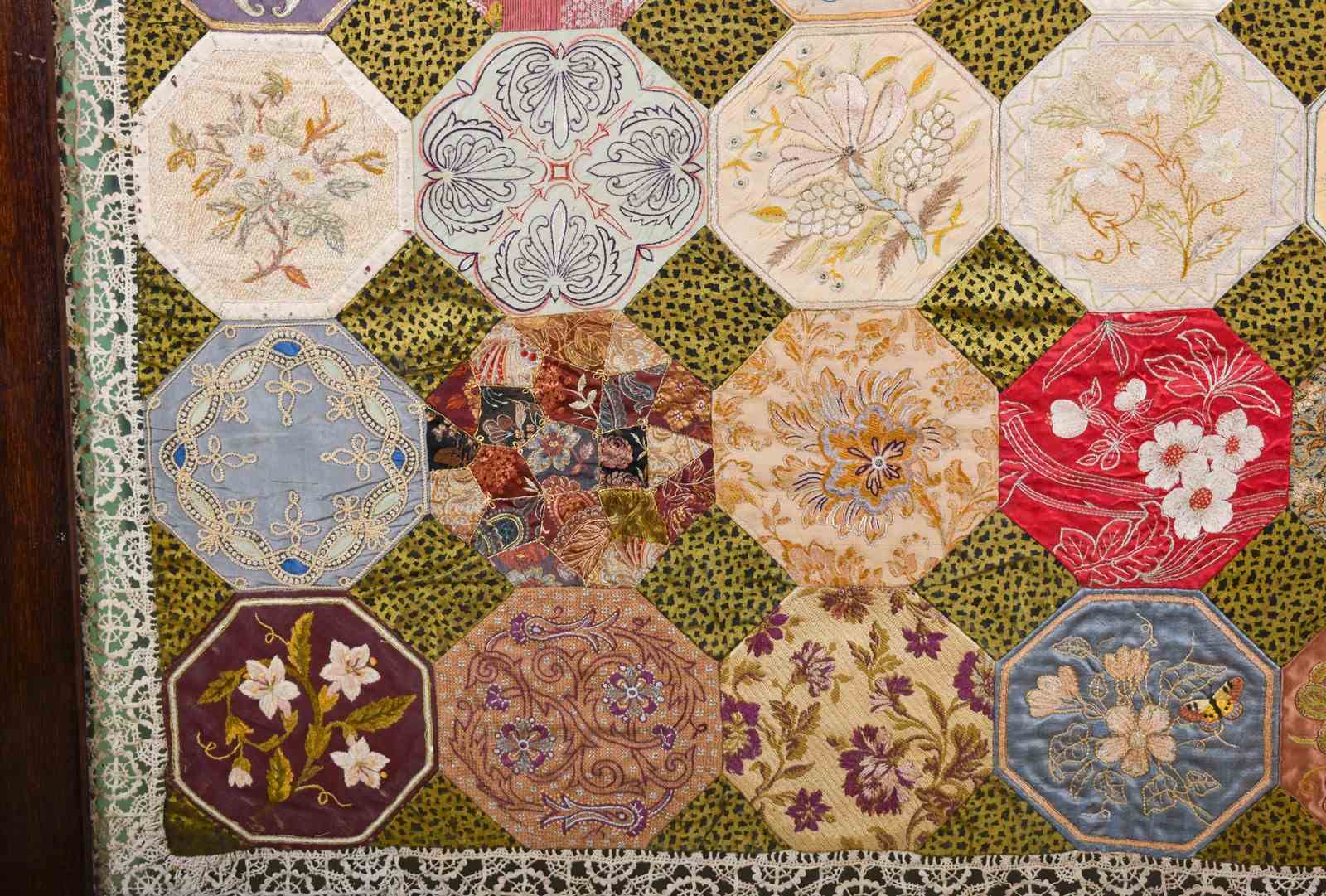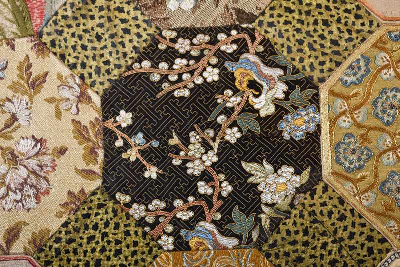 An extraordinary double sided Aesthetic Movement period silk patchwork by Ann Elizabeth Nasmyth (1817-1893).