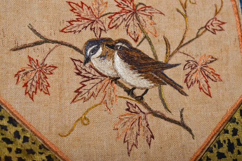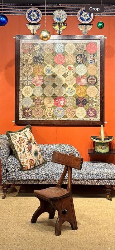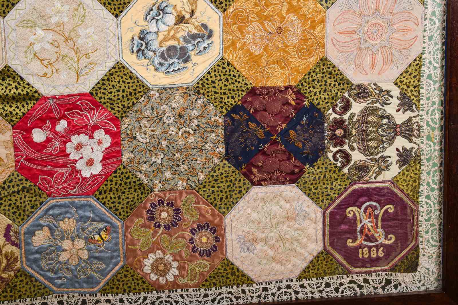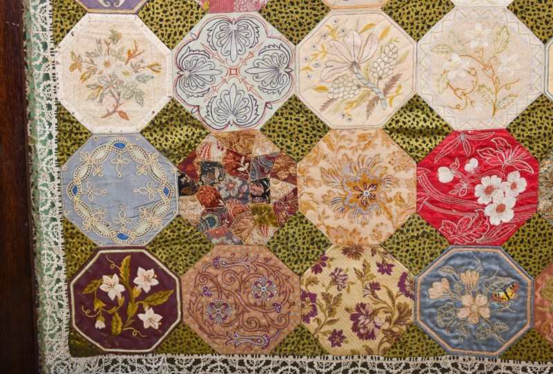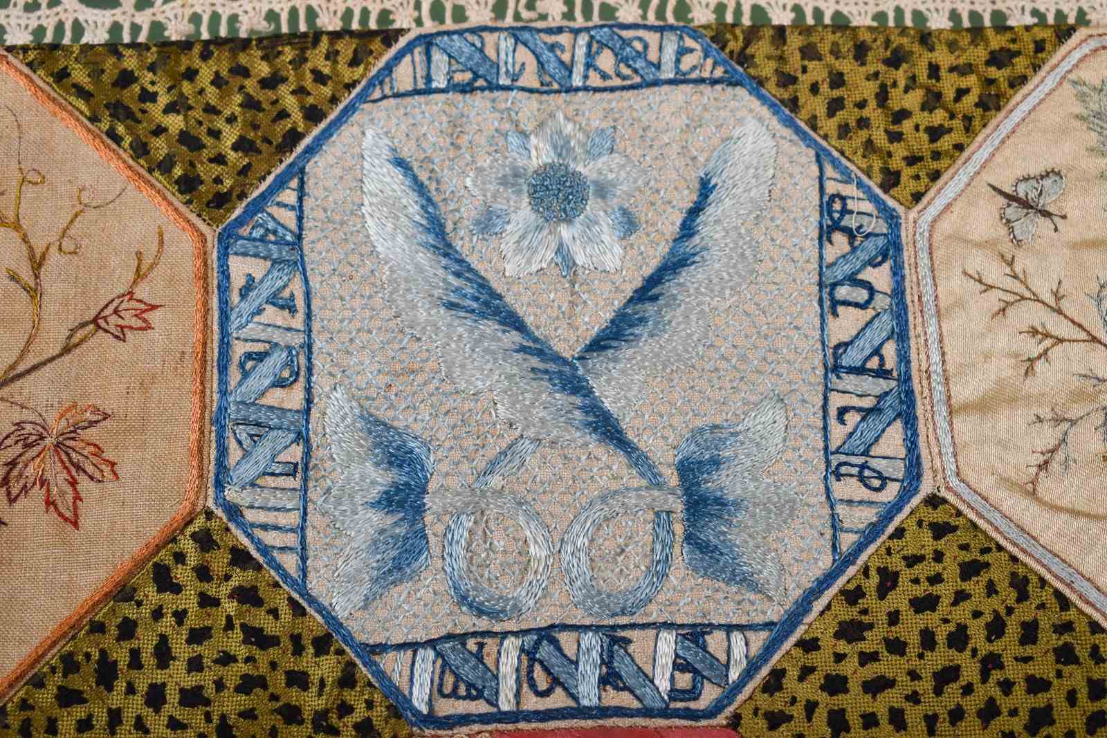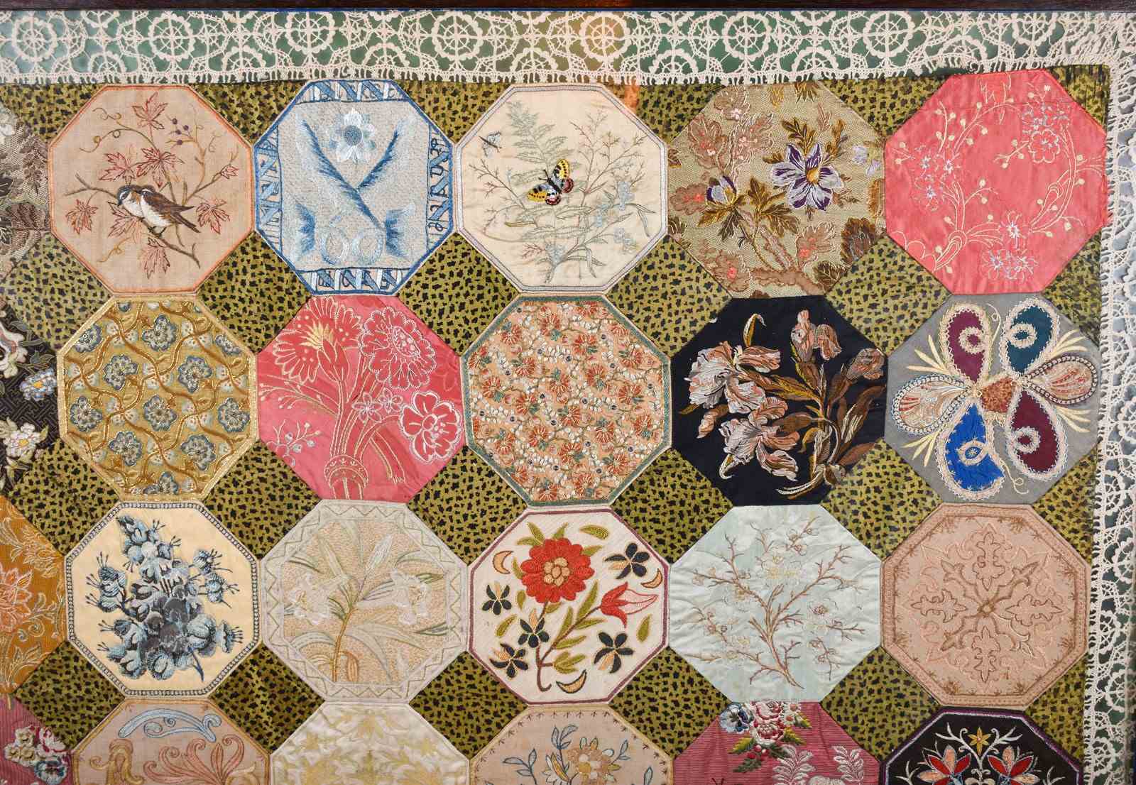 An extraordinary double sided Aesthetic Movement period silk patchwork by Ann Elizabeth Nasmyth (1817-1893).