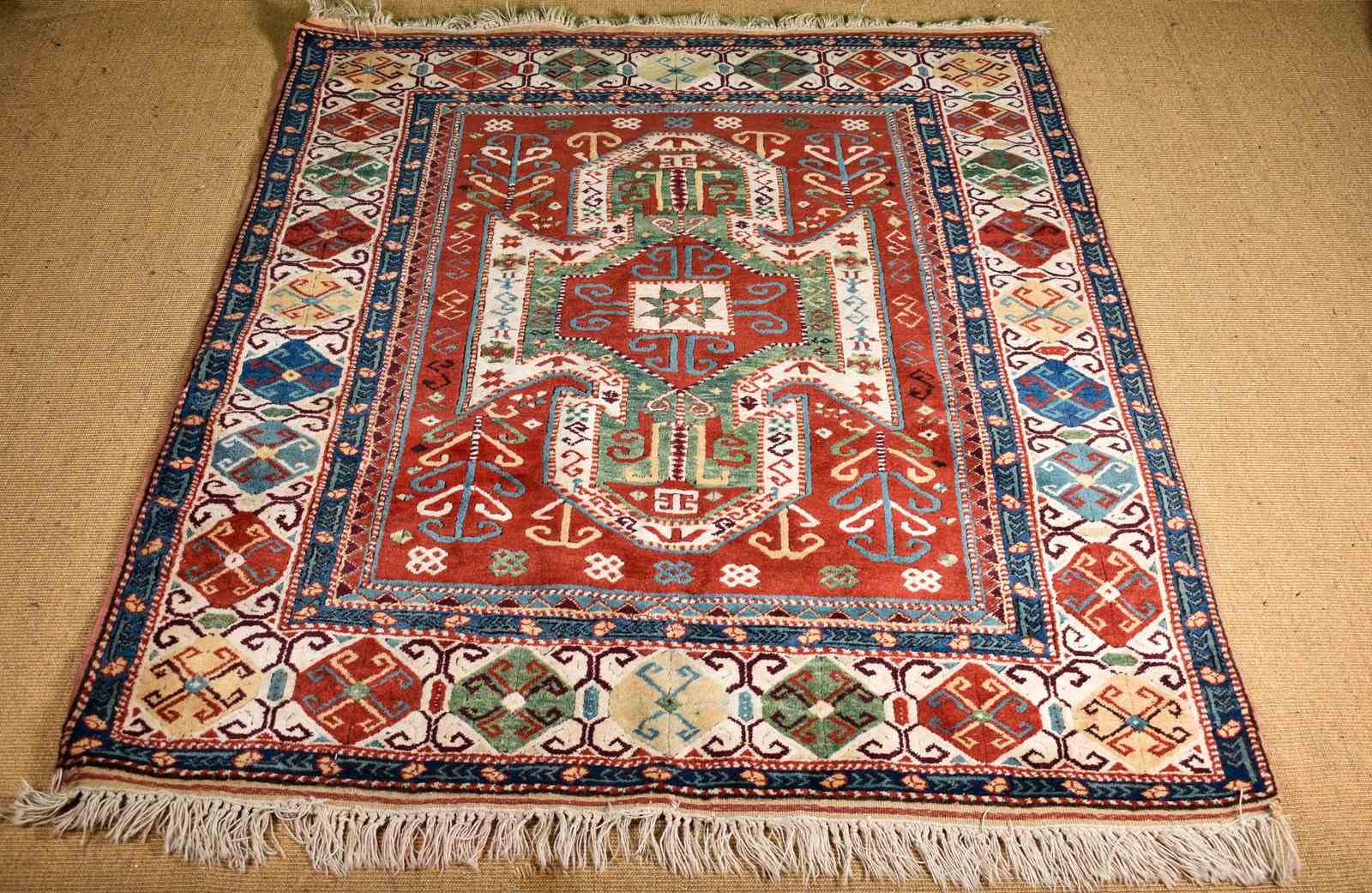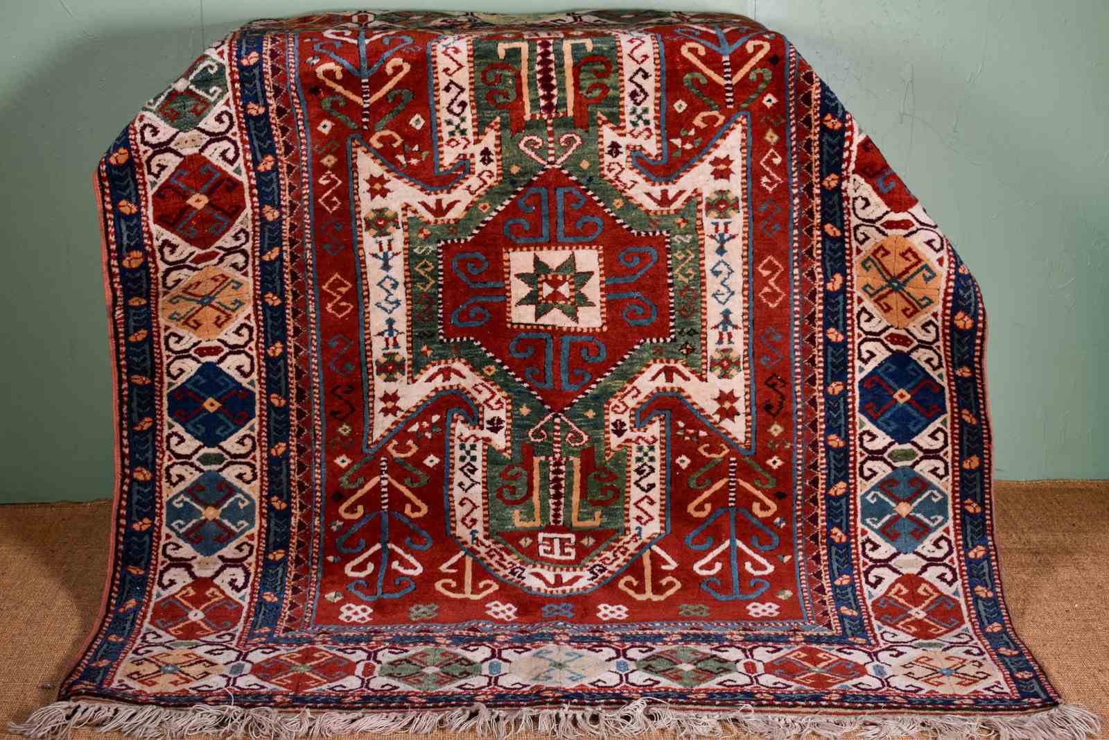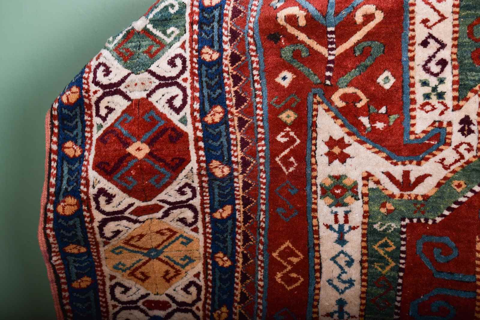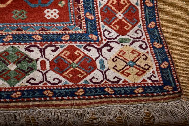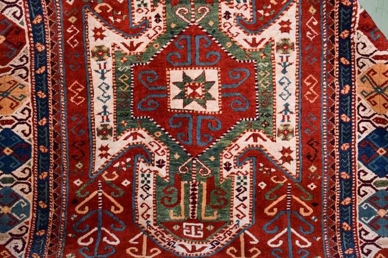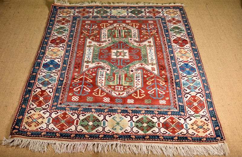 With typical shield design surrounded by geometric devices and anthropomorphic motifs.