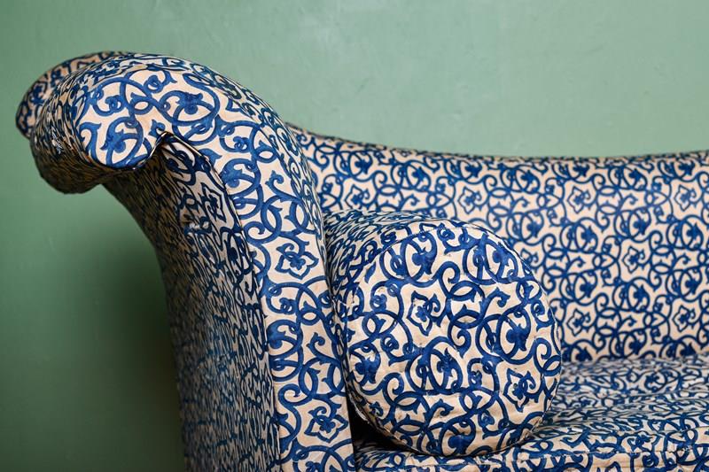 The horsehair integral upholstery and 'squab' cushions on this chaise are completely original, along with the solid birch frame and webbing.