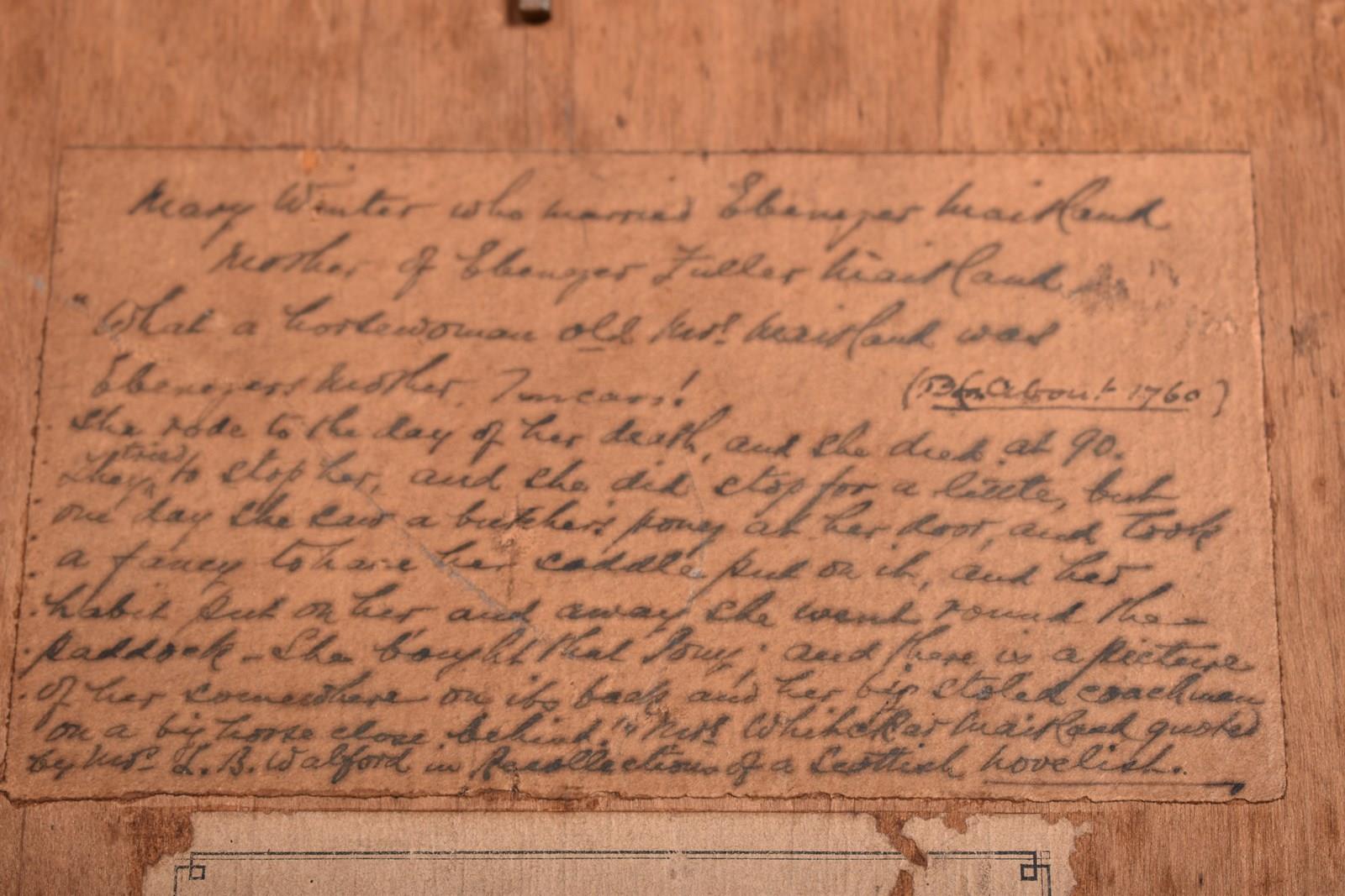 To the reverse there is a hand written account of Mary Winter by Mrs Walford, it reads something like this…