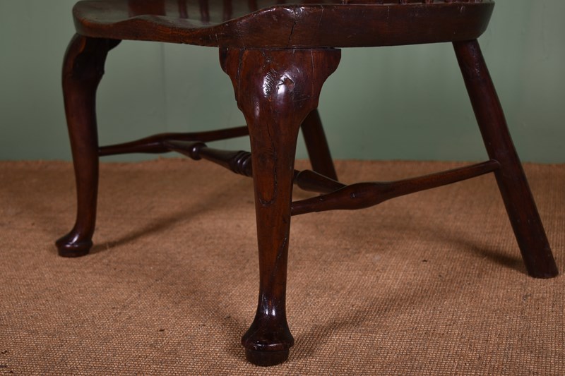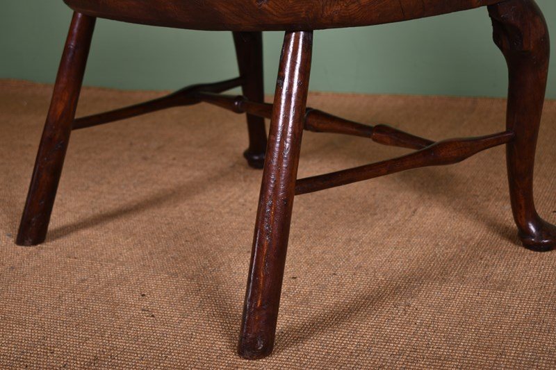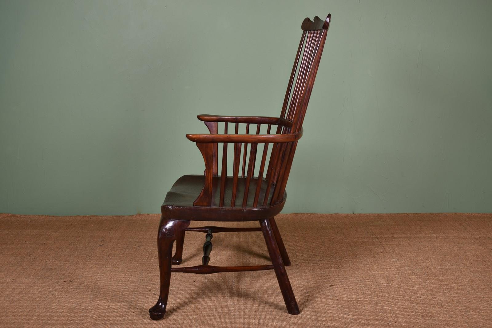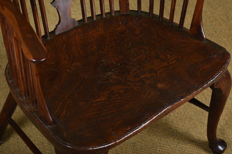 An impressive mid-18th century yew wood comb back Windsor armchair.