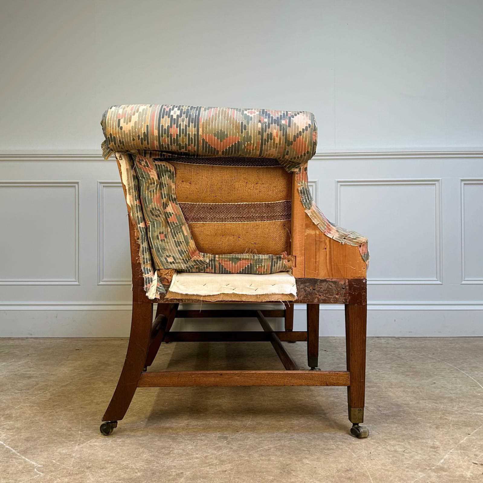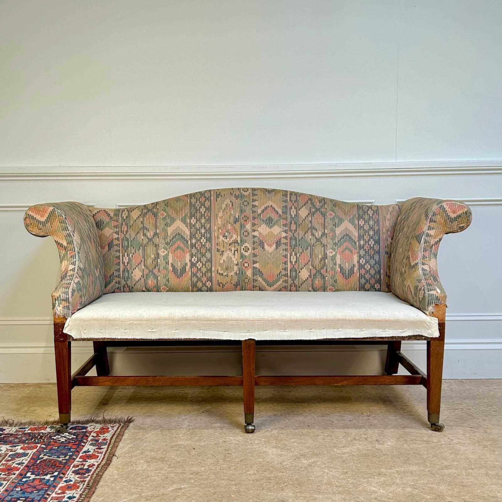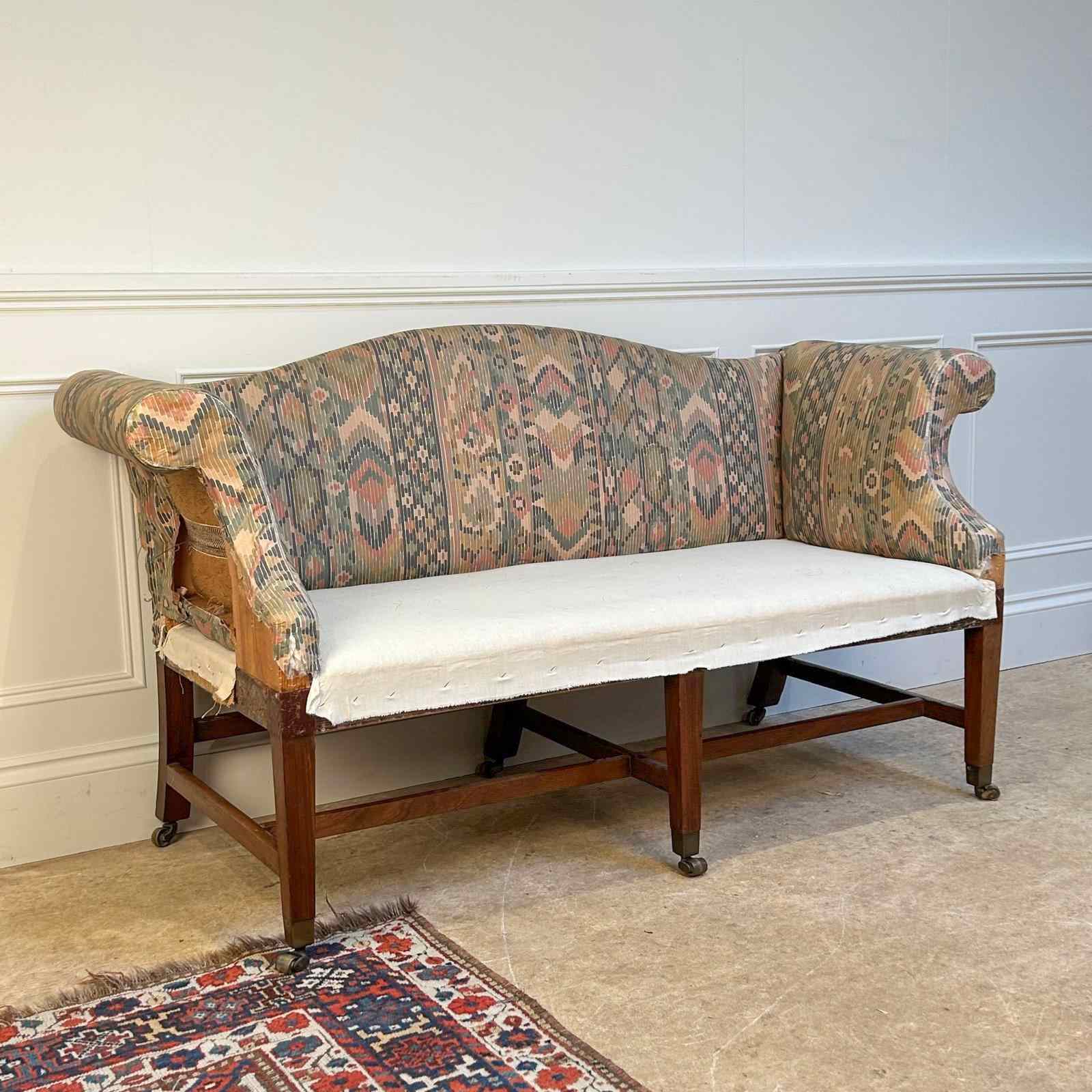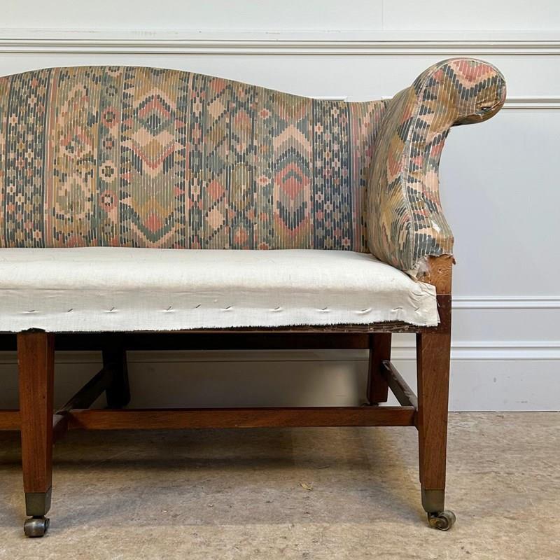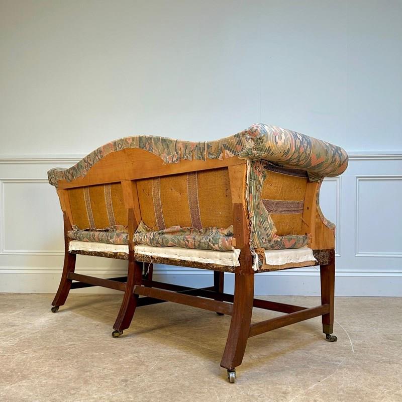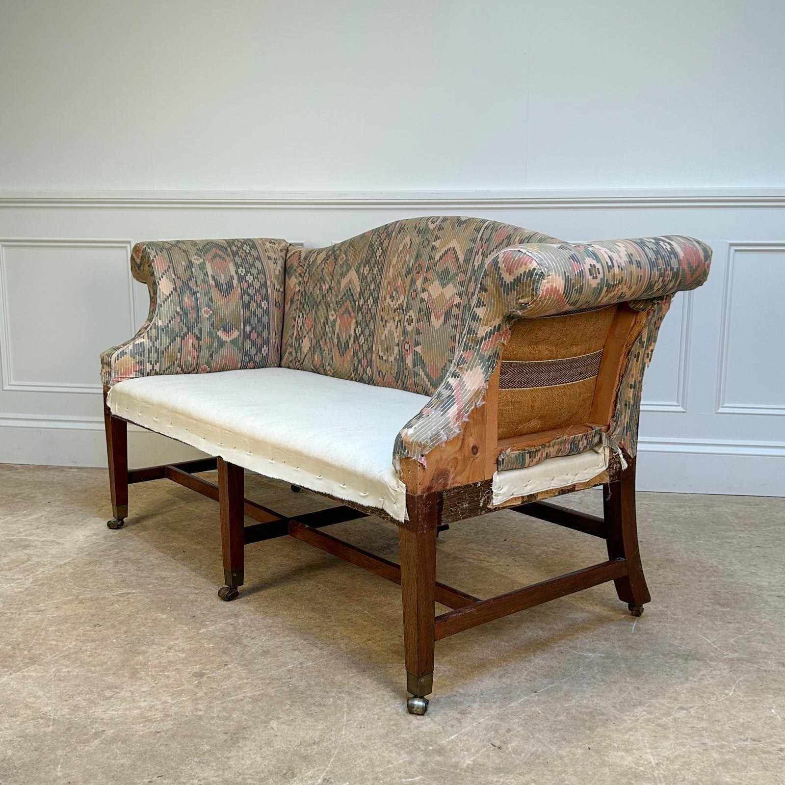 A beautiful and super quality George II sofa, circa 1920. Raised on 6 tapering mahogany legs with adjoining stretcher rails and retaining the original brass castors. A lovely shapely sofa of small proportions. Retaining the original horsehair and now ready for upholstery. English, Circa 1920.