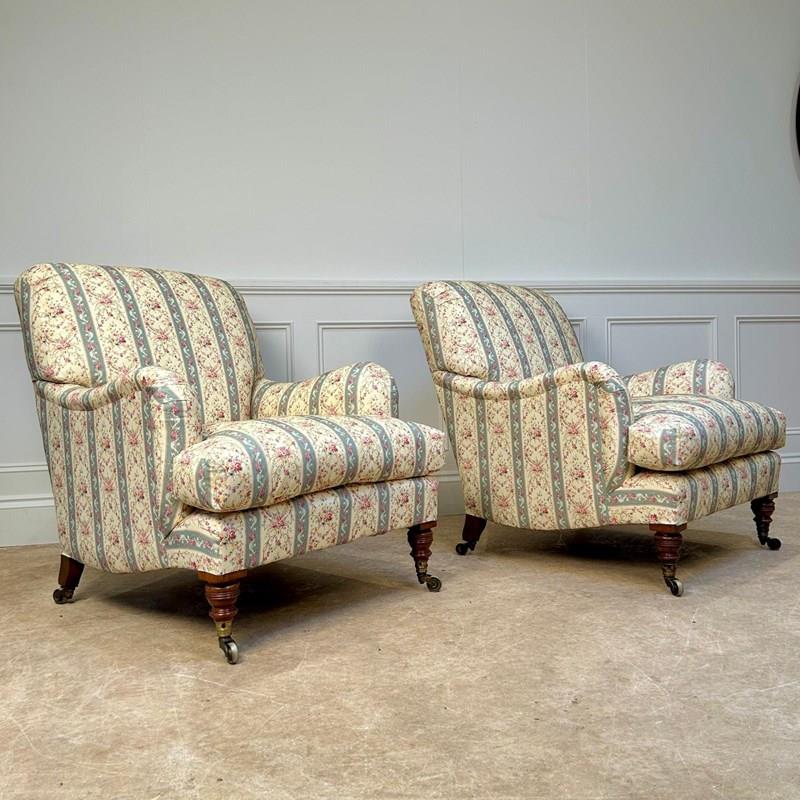 Wonderful Pair Of Howard & Sons Bridgewater Armchairs