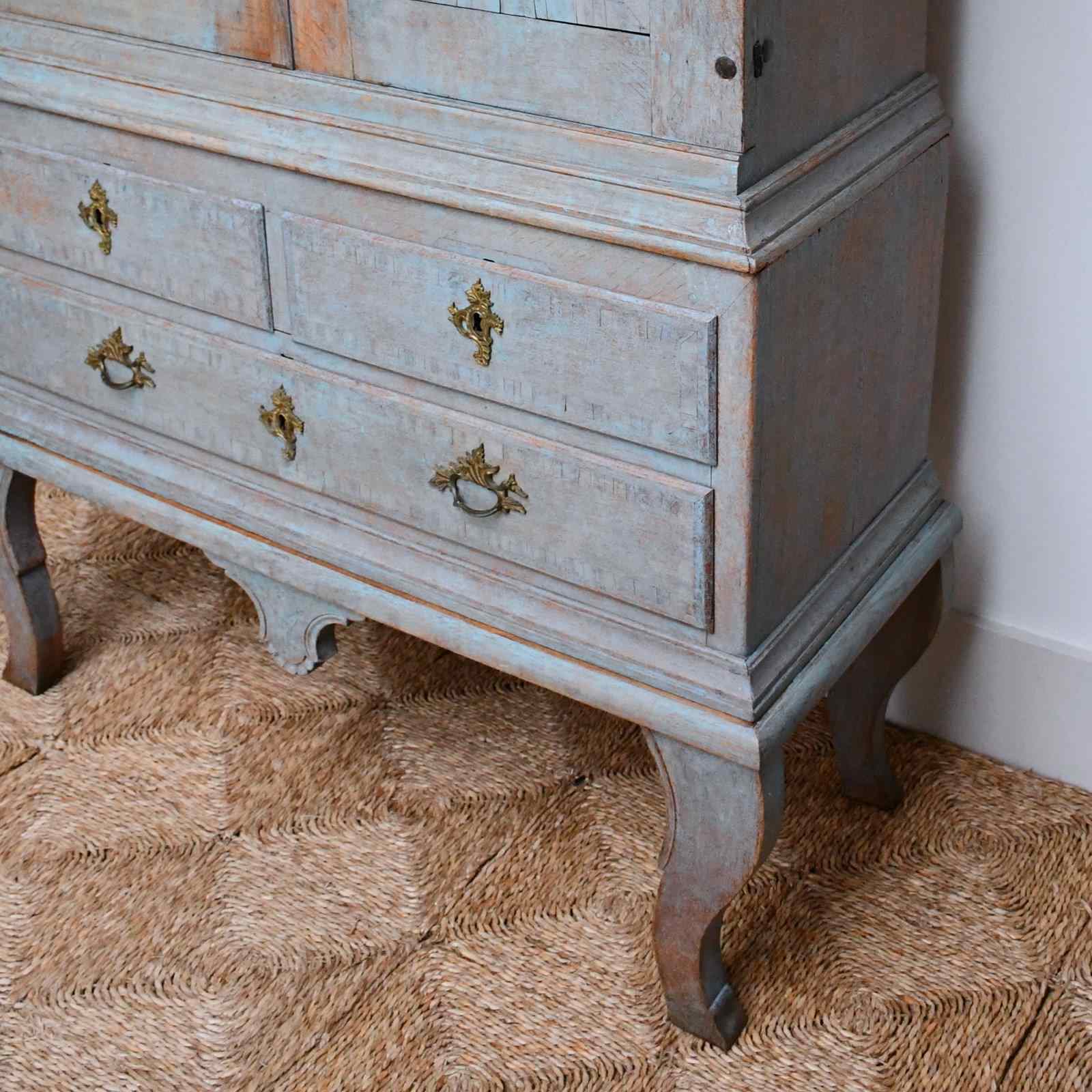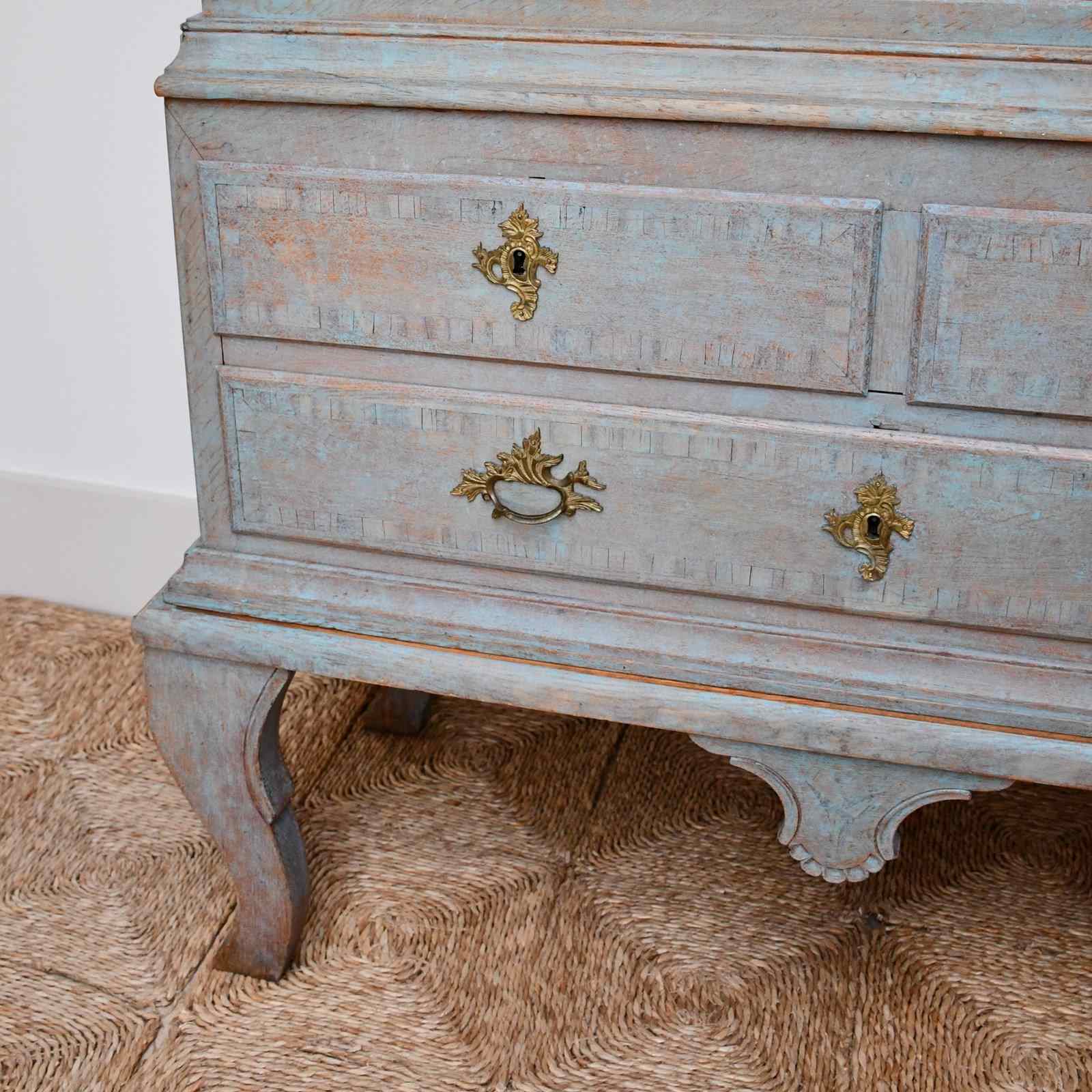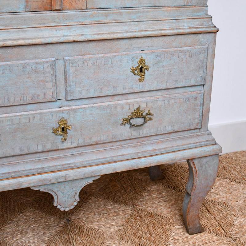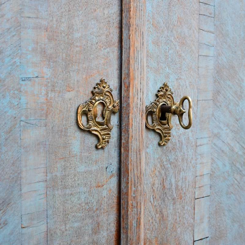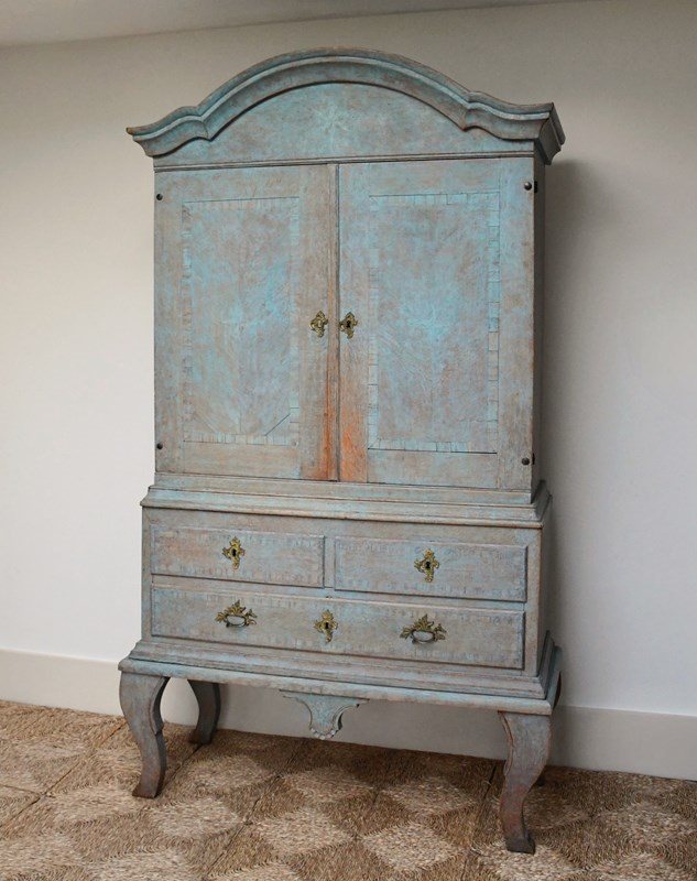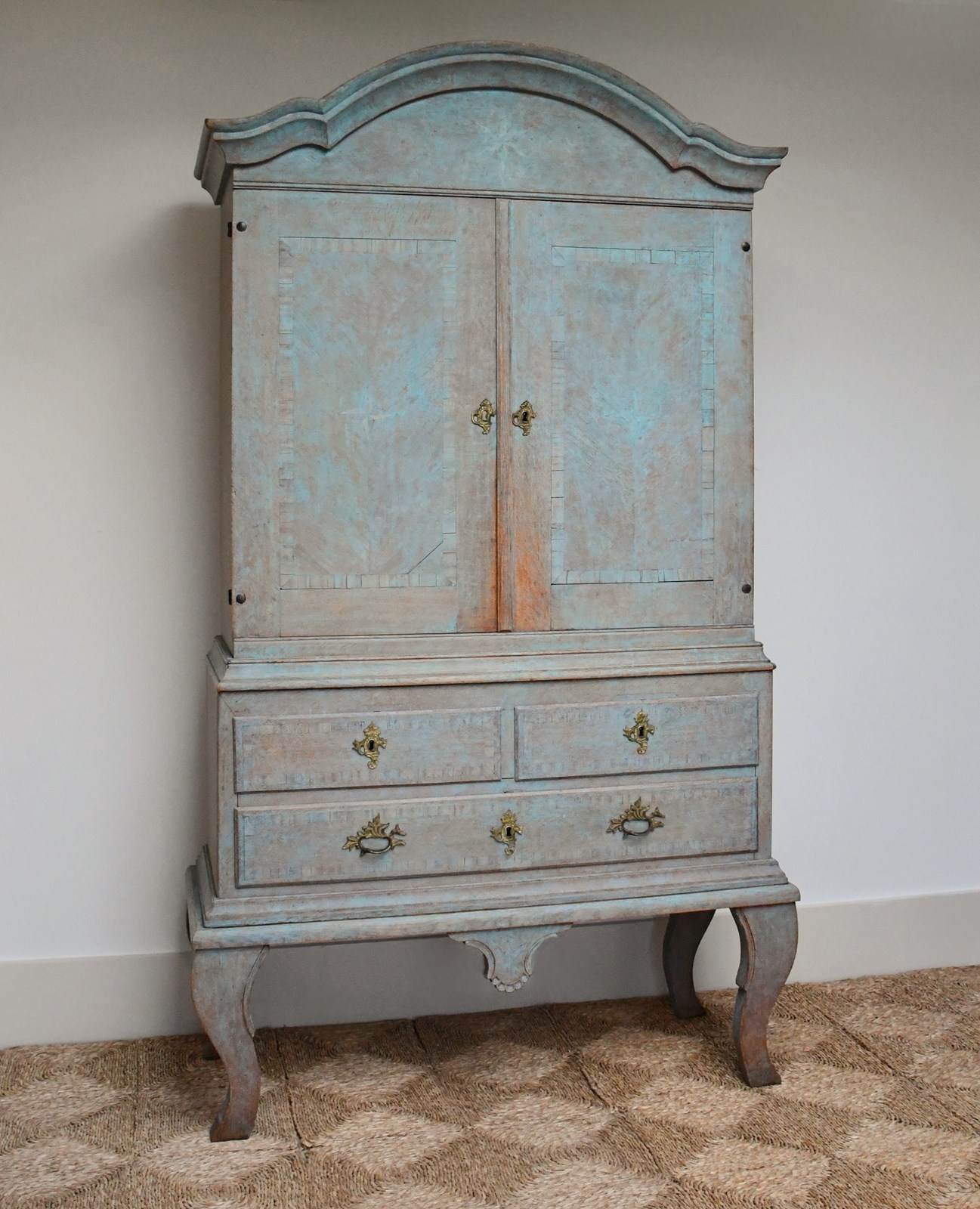The cabinet displays a wonderful blue/grey distressed painted finish.