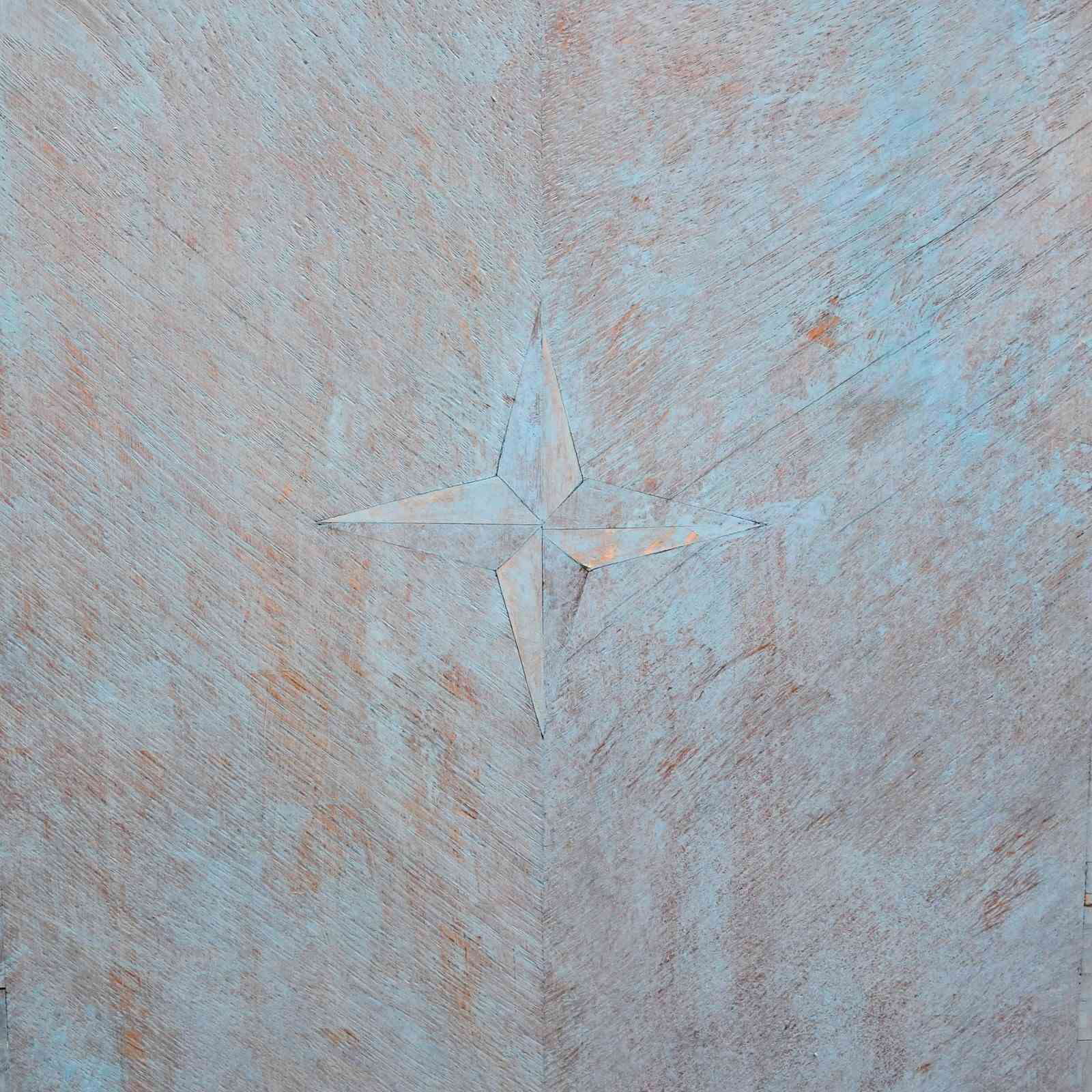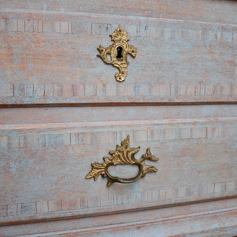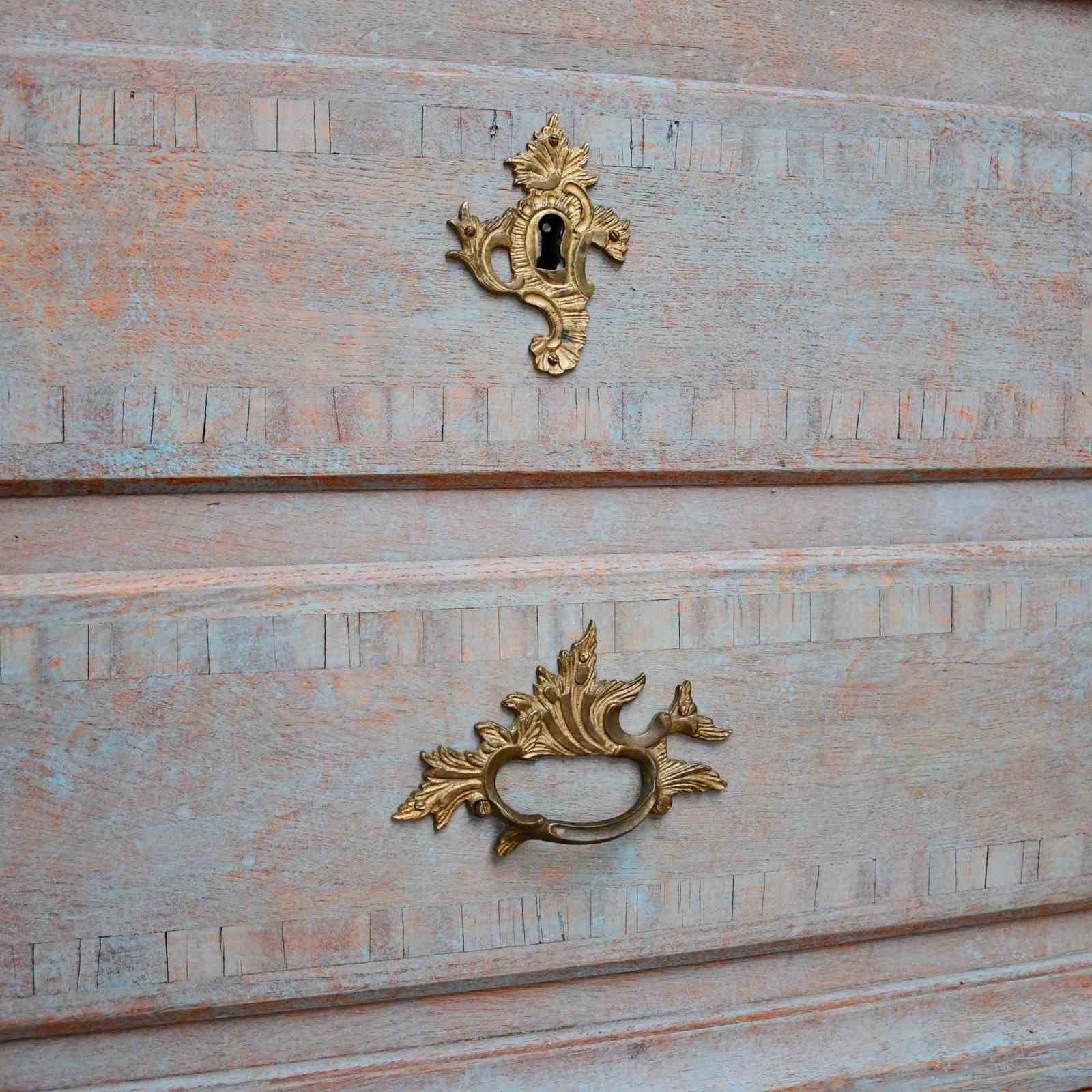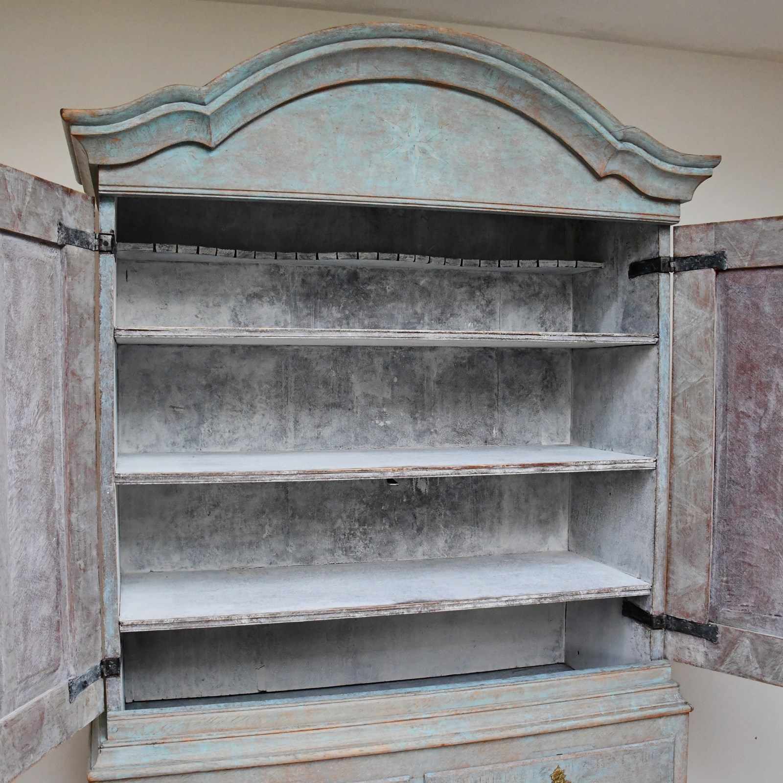 The cabinet displays a wonderful blue/grey distressed painted finish.