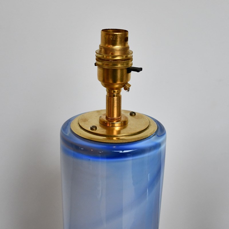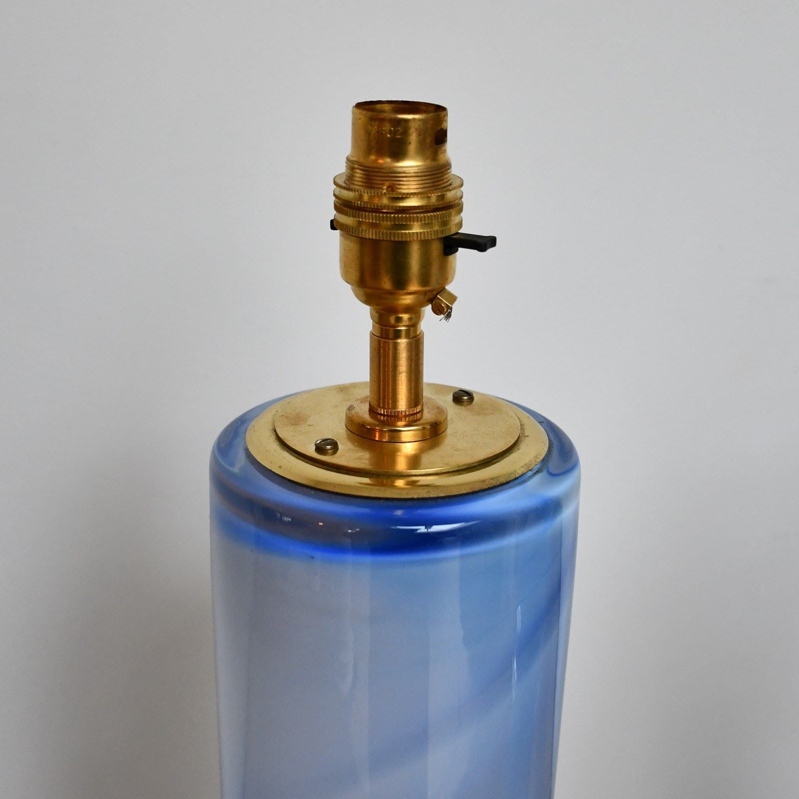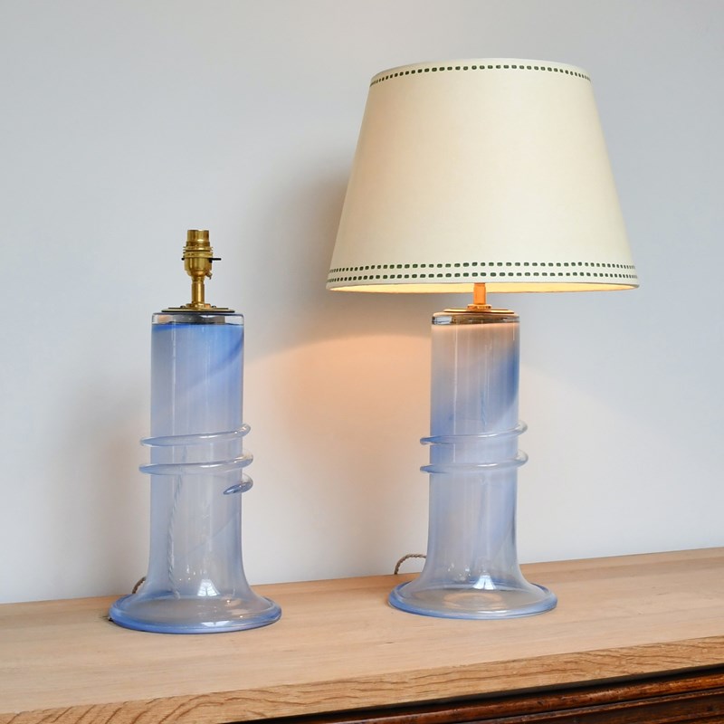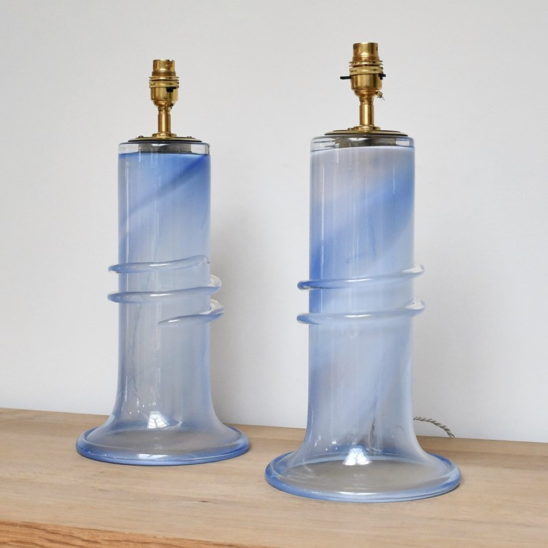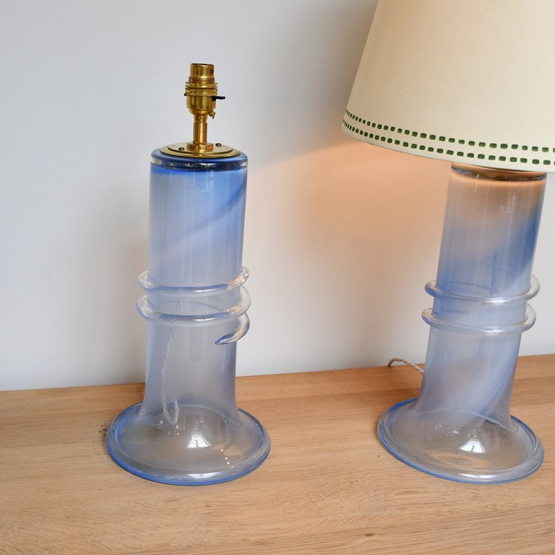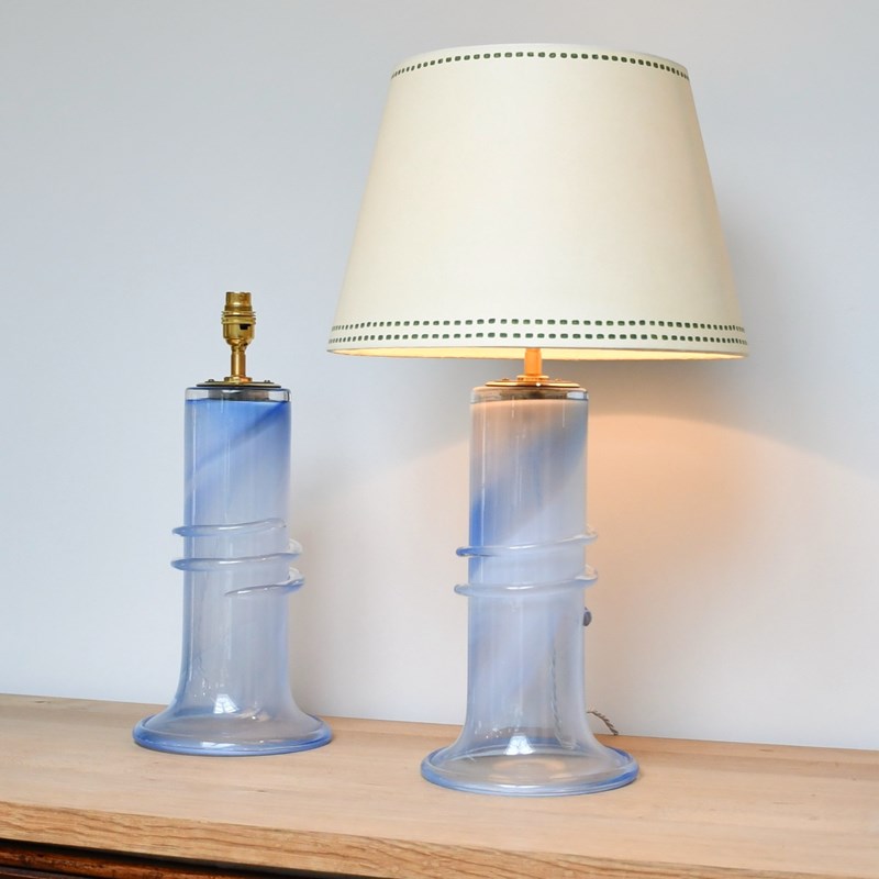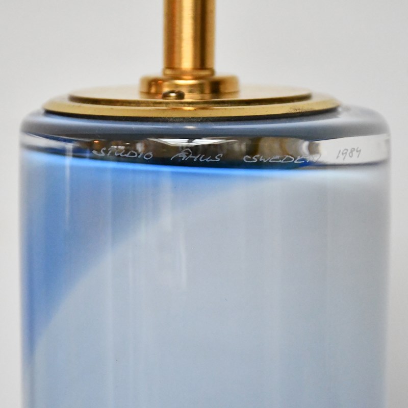 Stylish blue glass table lamps designed by Hannelore Dreutler for Atelje Lyktan, made by Studio Glashyttan Åhus.