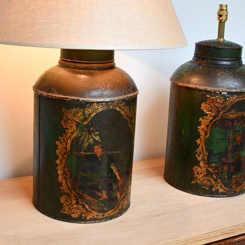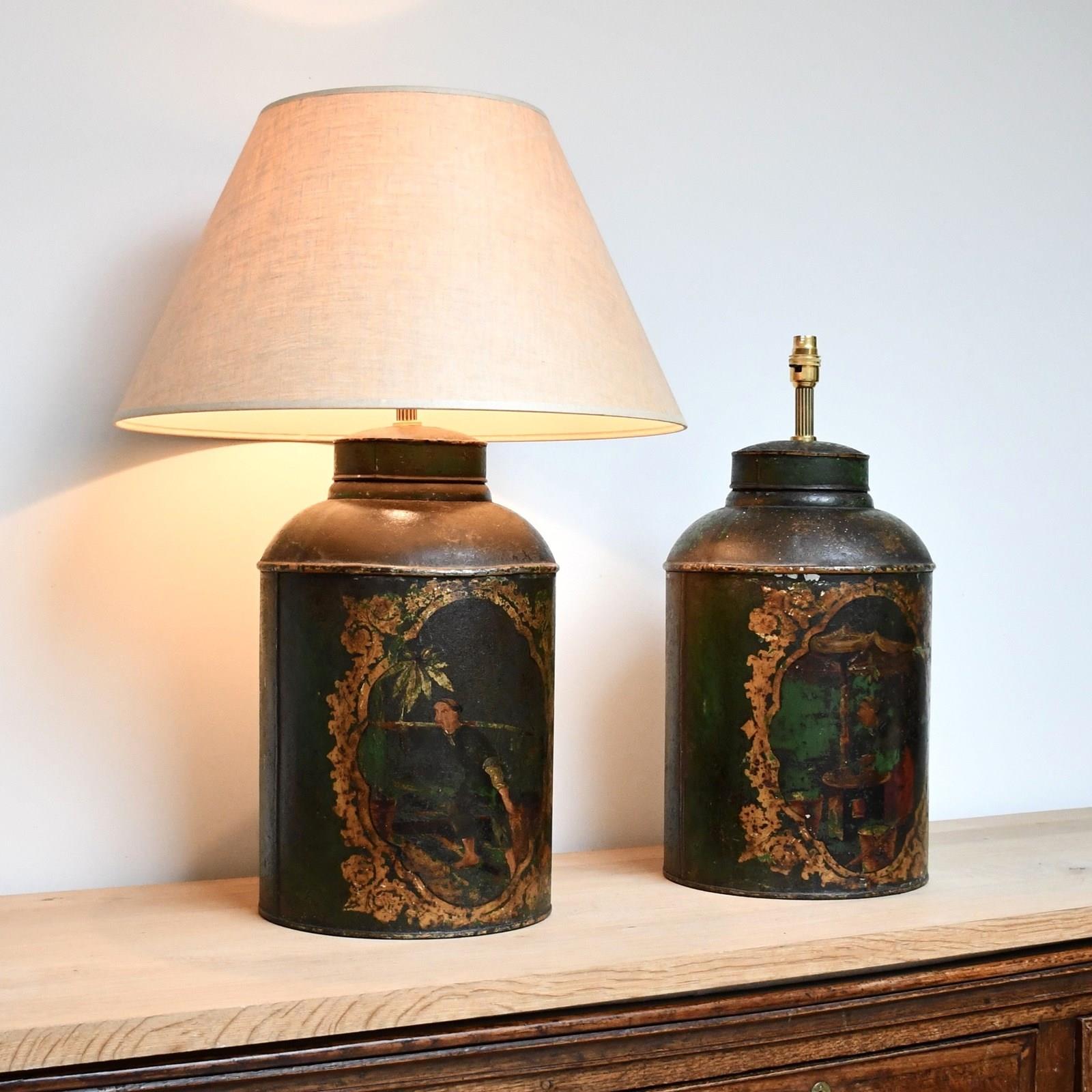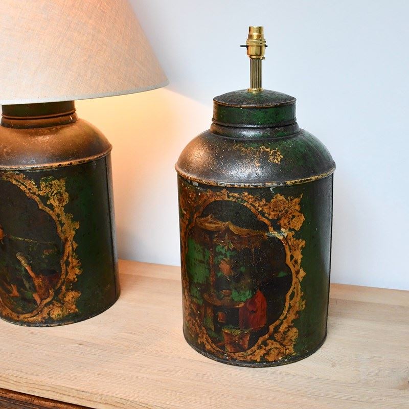 To note: the decoration and colouring to both lamps is heavily worn and distressed - this adds greatly to the character of the lights.