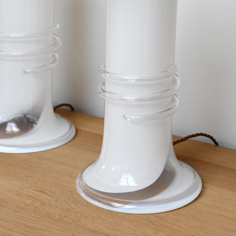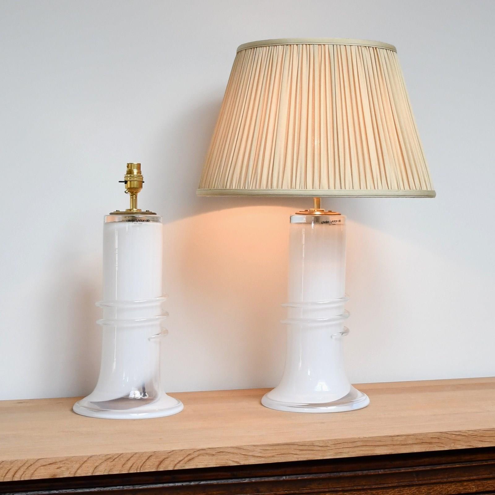 Stylish white glass table lamps designed by Hannelore Dreutler for Atelje Lyktan.