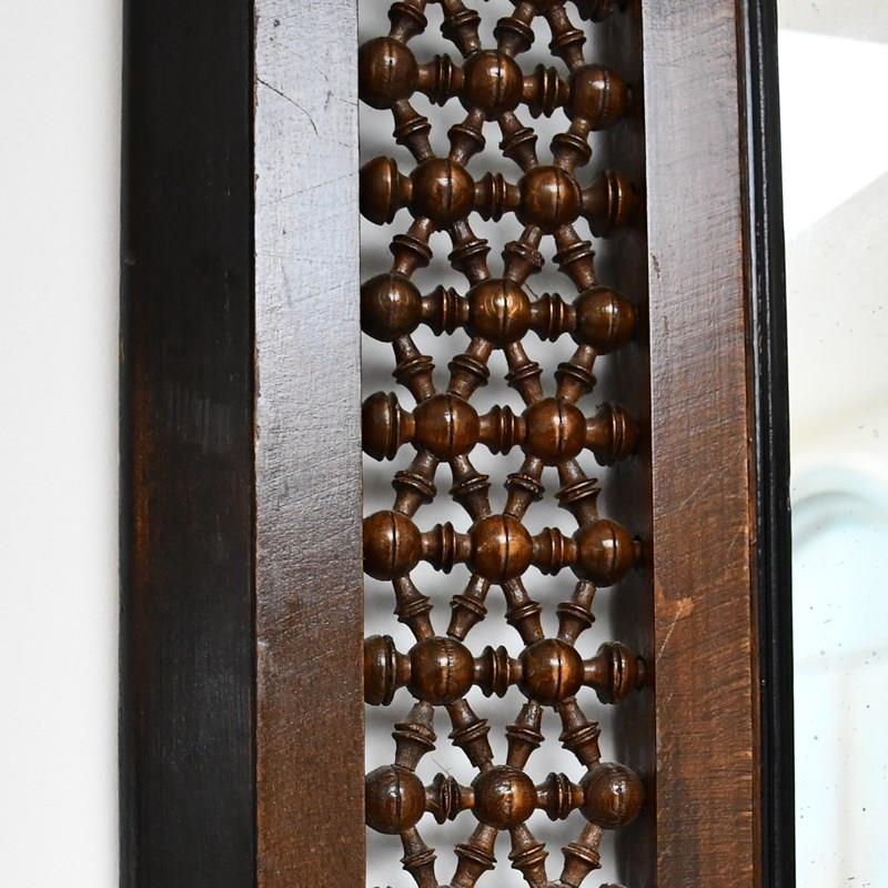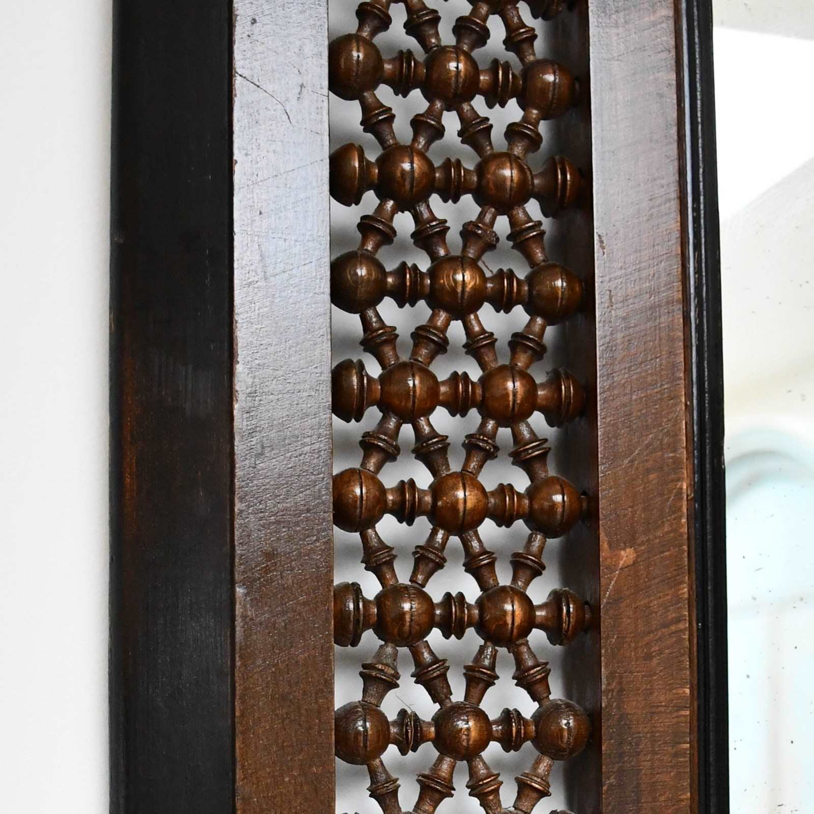 The original aged mirror plate, enclosed within a black moulded inner border and the outer wood frame outlined in black.