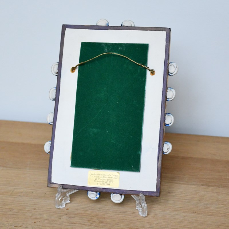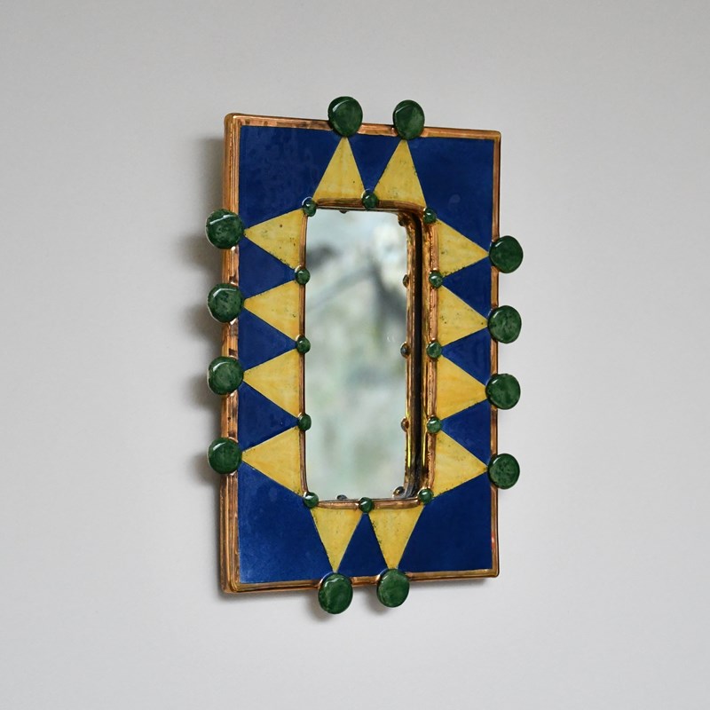 Decorative ceramic mirror made by artist Michelle Ohlson for Made in Gloucestershire.