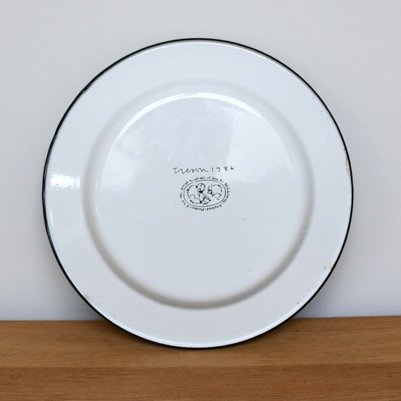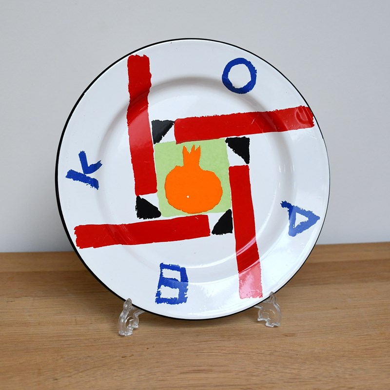 Designed for The Royal Academy of Arts, a tin enamelled circular plate of abstract design.
