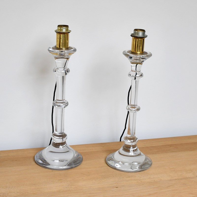 Crystal glass table lamps, designed by Ingo Maurer and made by Val St Lambert, Belgium.