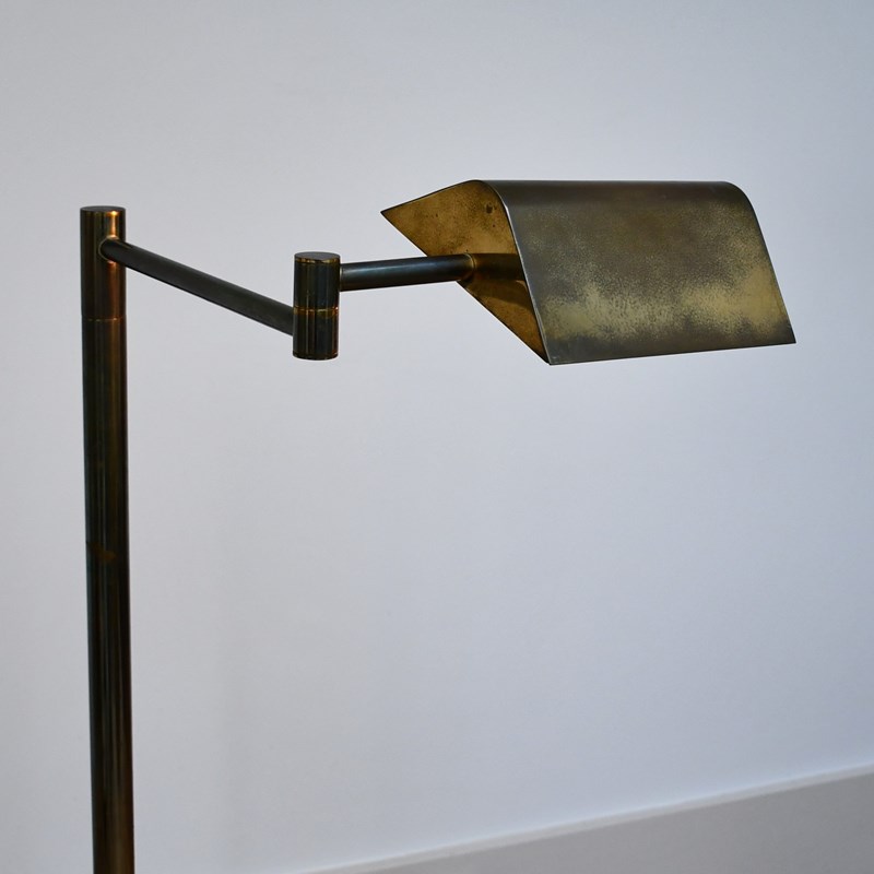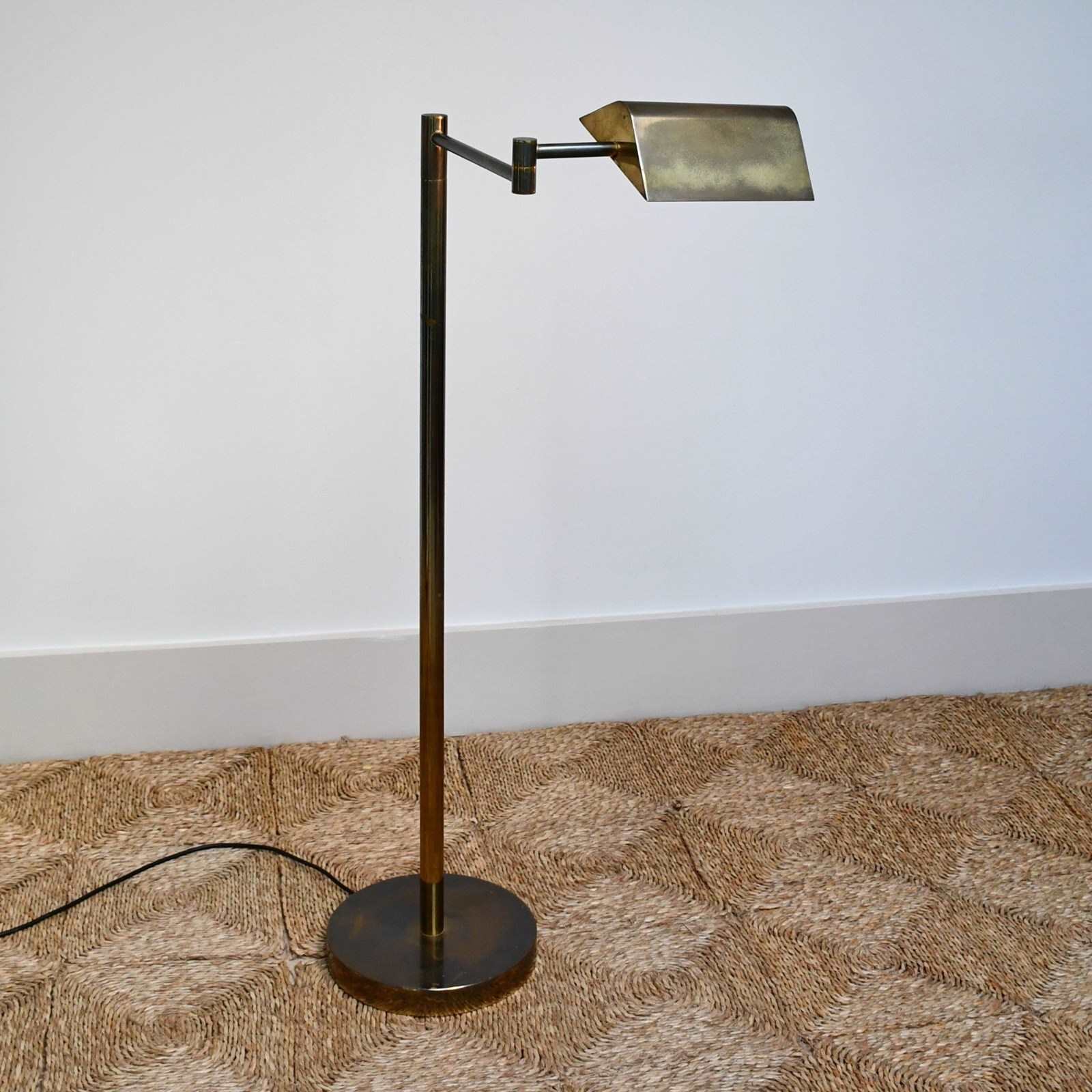 Fixed height, brass swing arm floor lamp of good quality heavy construction.